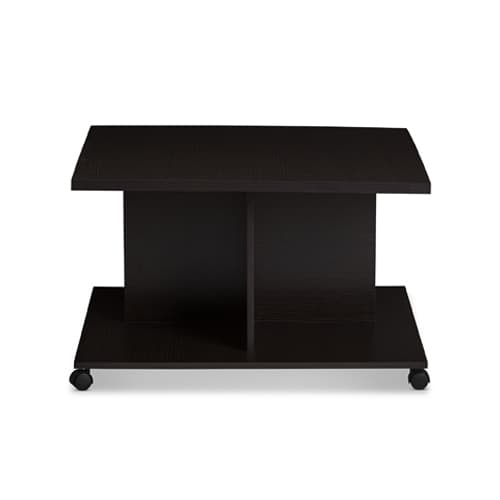 This Baxton Studio Cladine coffee table is dynamic in its simplicity, making it easy to coordinate with your existing décor. The modern and contemporary inspired design emphasizes clean lines and geometric shapes. It is finished all over in a welcoming, wenge brown and features a smooth, square table top, with 4 open storage compartments underneath. The open compartments beneath the table top are ideal for storage or displaying décor, making it a great option as an accent table. The table comes with 4 nylon castors for ease of mobility.This item requires oversize delivery. Please refer to the Order Summary in the Shipping step at checkout for delivery charge.
