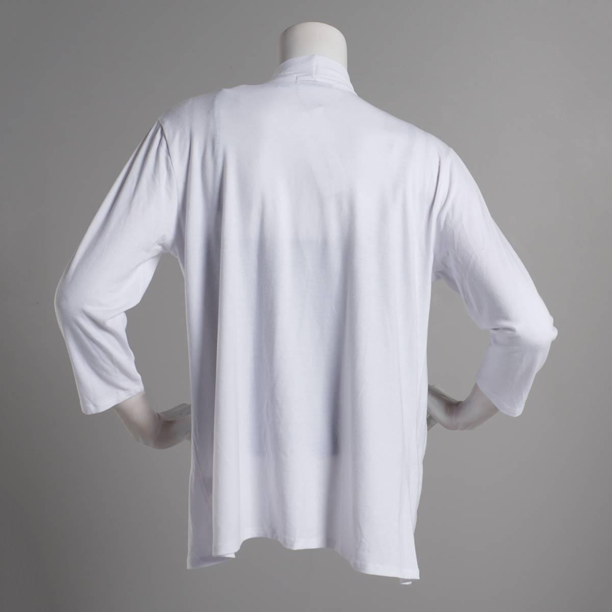 Description Pattern: SolidSleeve Length: 3/4 SleeveNeck: Drape NeckOpen front Care: Machine Wash, Tumble Dry Material: Polyester, Rayon, Spandex Item #: 613828 Pricing Disclosure