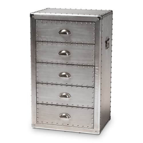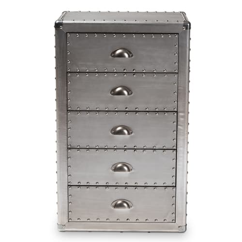 Description This Baxton Studio Davet 5 drawer accent chest will bring chic French industrial style into your space. It is constructed from silver metal with cool rivet detailing...