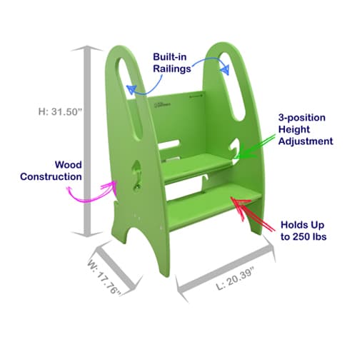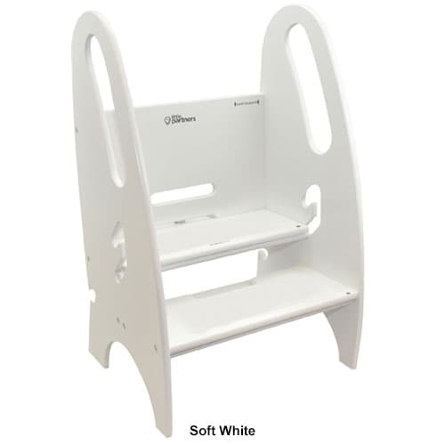 This Little Partners™ 3-in-1 Growing step stool is designed for both children and adults. It gives a secure boost when you need it without taking up precious space in your home. There is a tongue-in-groove assembly and superior craftsmanship that give it strength and stability, setting it apart from other step stools on the market. A 3 position adjustable height makes it versatile for multiple uses by the whole family.