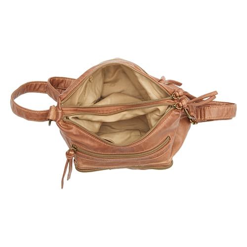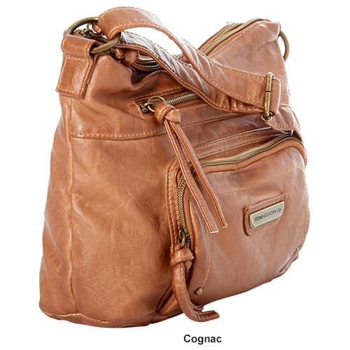 This Stone Mountain smokey mountain double top zip hobo is a solid design with a roomy main compartment, adjustable shoulder strap, 3 exterior zip pockets, and classic interior pocket construction.