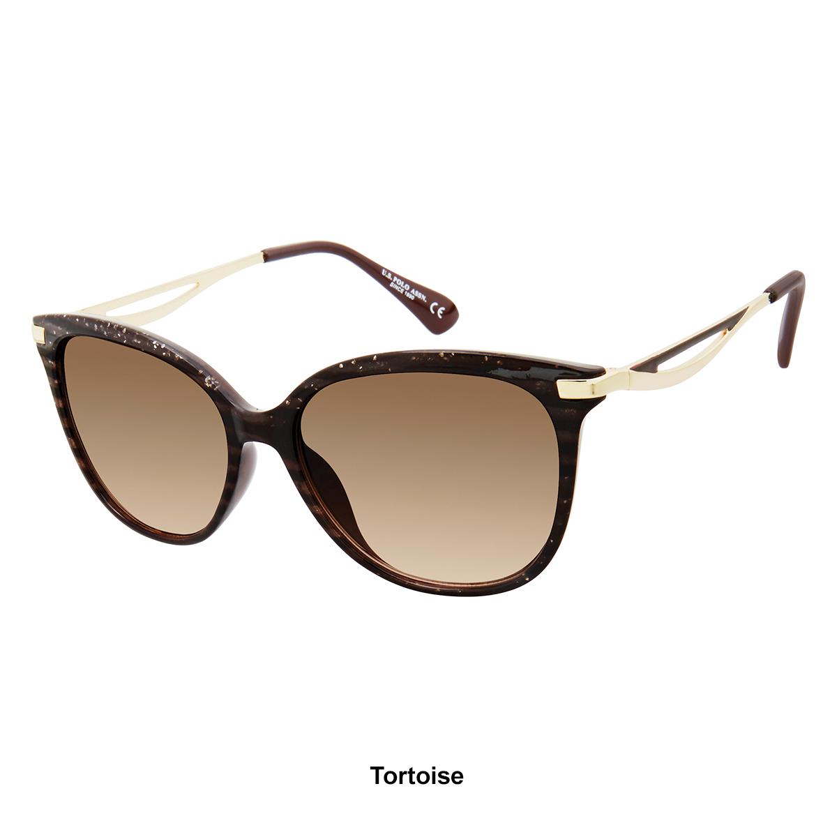These Womens U.S. Polo Assn.® metal temple sunglasses are certain to get attention and they are perfect for the true trend setter. The glitter flecks set them apart from the rest.