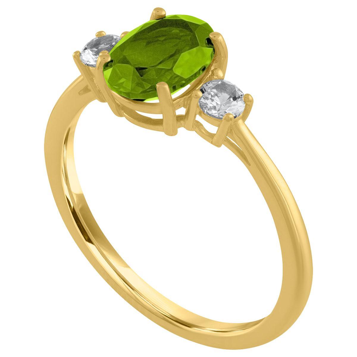 Set in 10kt. yellow gold, a stunning oval shaped genuine peridot gemstone is accented with created white sapphire stones in this beautiful Gemstone Classics™ ring.