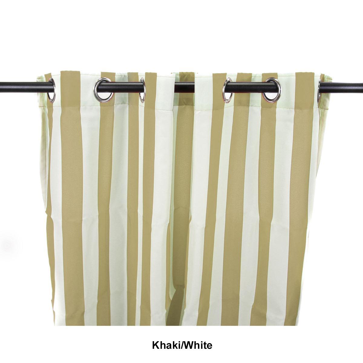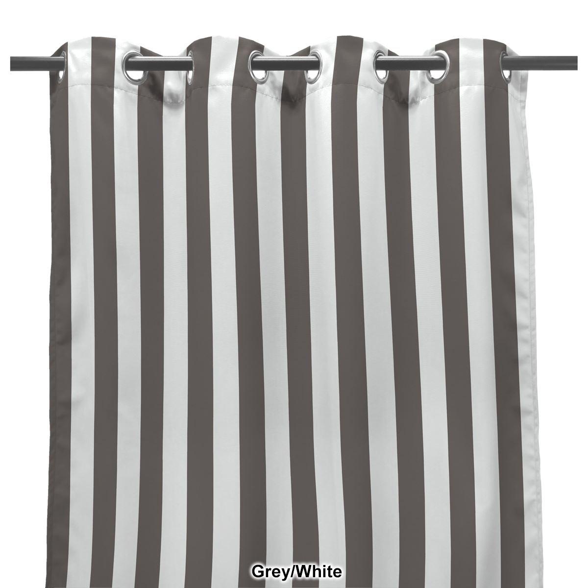 This Jordan Manufacturing outdoor striped curtain will add a fun vibe to your outdoor space and offers 500 hours of UV protection. It features stainless steel plated grommets with spun polyester fabric. Its unique design resists fading, mold and mildew and is easily cleaned with a mild soap and warm water.This item requires oversize delivery. Please refer to the Order Summary in the Shipping step at checkout for delivery charge.