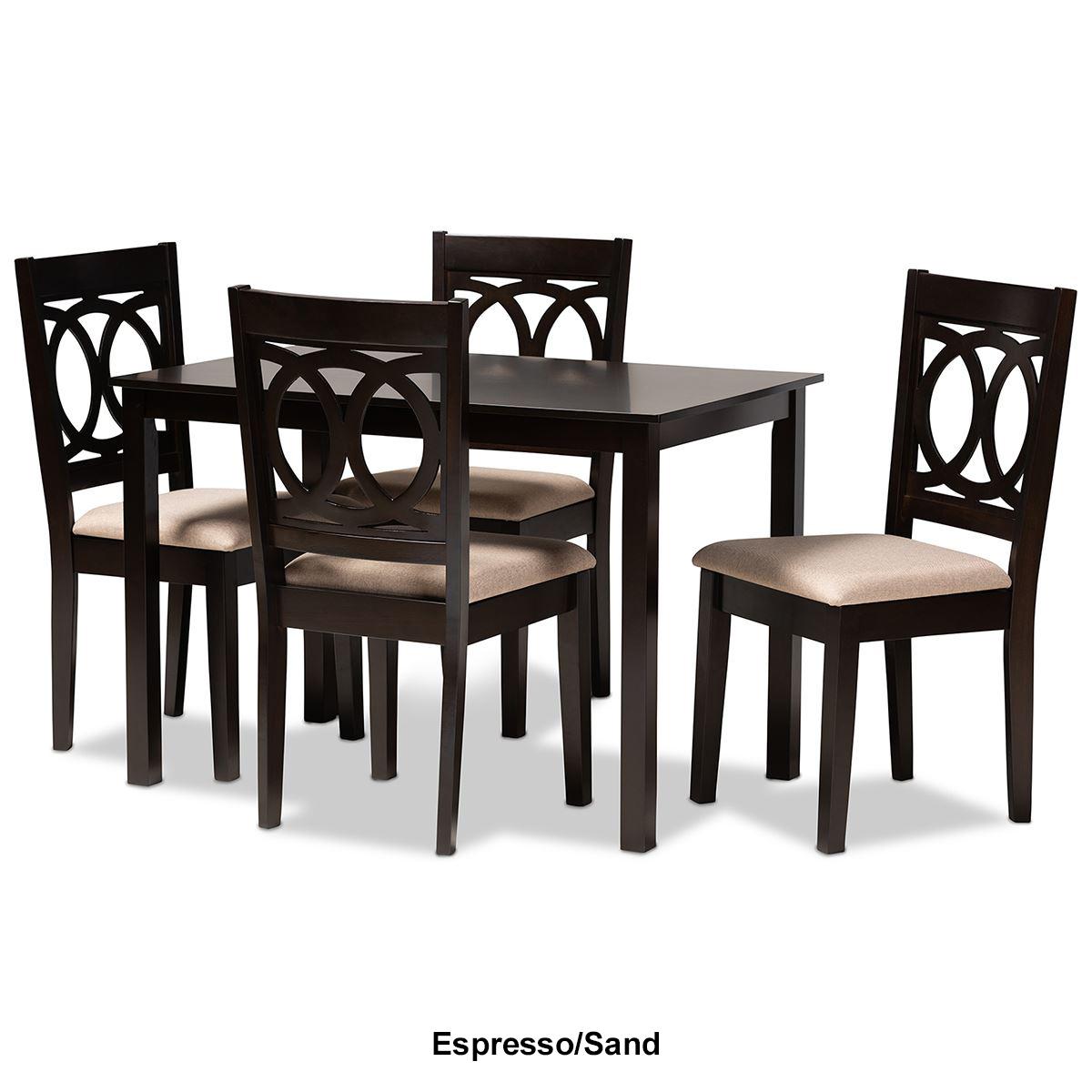 Description This Baxton Studio Lenoir 5 piece dining set has a fusion of traditional design elements and modern craftsmanship that make it a stunning addition to any dining...