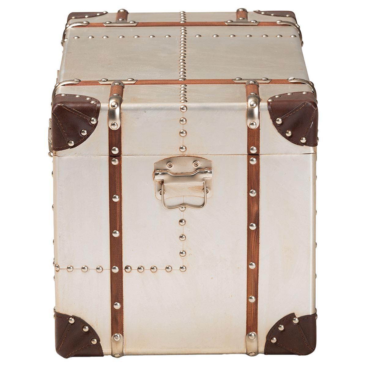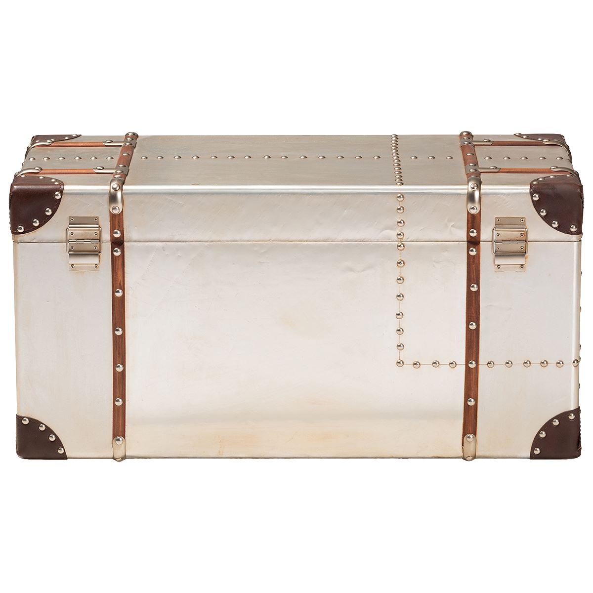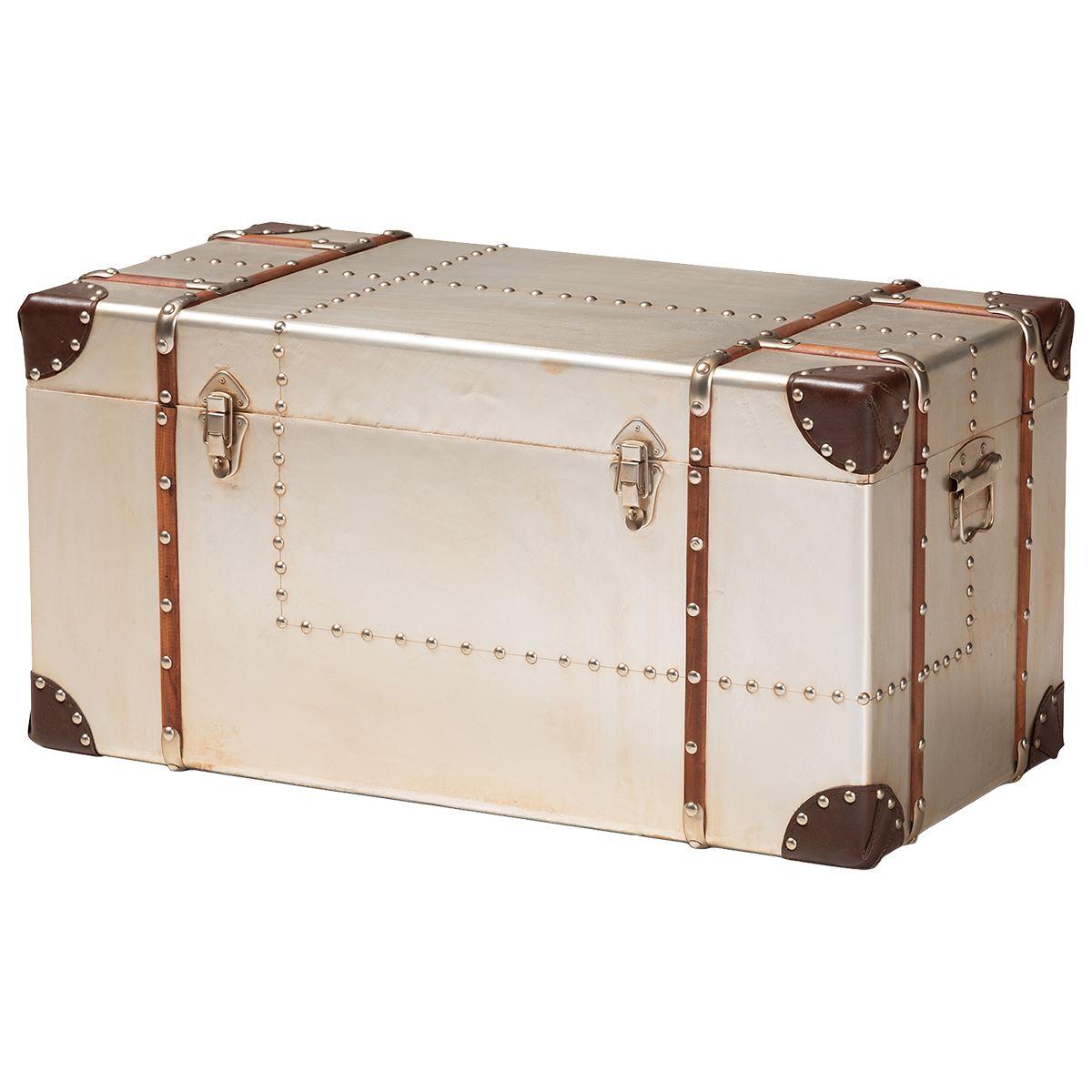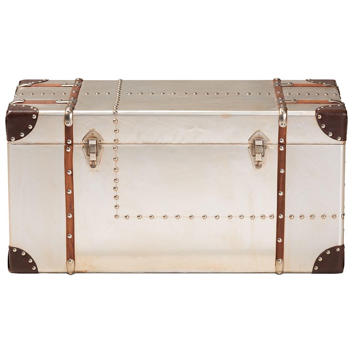 This Baxton Studio Bechet Collection French storage trunk adds a cool and vintage industrial vibe to your space. Its design features a spacious inner storage compartment that is modeled after antique steamer trunks. Bechet is accented with silver metal handles and imitation locks, with dark brown faux leather corner protectors and silver metal rivets that add an extra dose of industrial style.