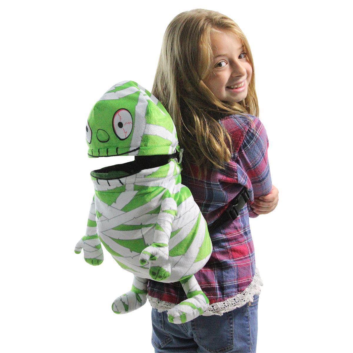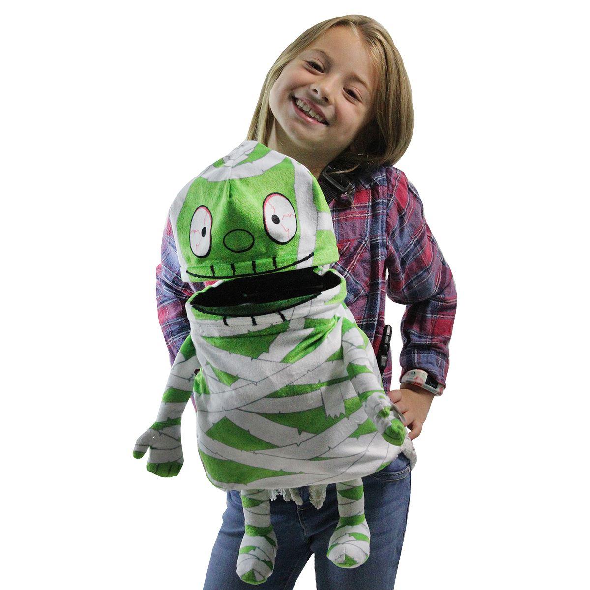 This Northlight Seasonal musical animated mummy Halloween trick or treat bag will have your little one trick-or-treat in style this year! The unique design allows the vampire´s mouth to open and close so that your loot can be gathered and safely stored while trick-or-treating. Press the left hand and the bag will come to life singing to the tune of the hit song "I Want Candy" and if you press the right hand to open and close the mummy´s mouth. The bag can also be worn as a backpack and is the perfect Halloween accessory to complete your child´s mummy costume. It is a super plush Halloween bag with flat bottom, adjustable shoulder straps with side release buckles.