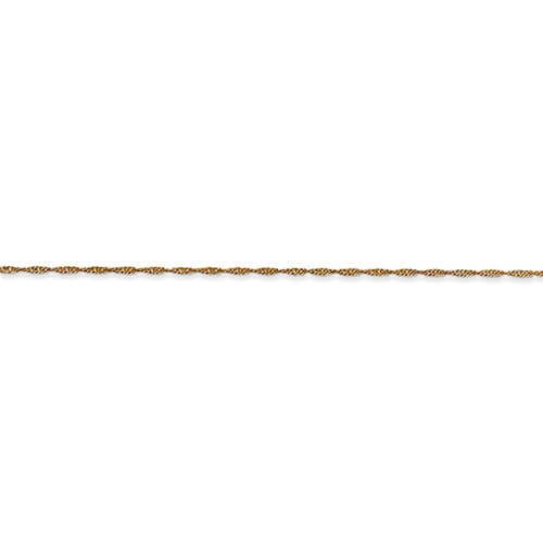 Instantly upgrade your personal style with this Gold Classics™ 14 kt yellow gold Singapore chain necklace. This 18-inch long and 1mm wide chain boasts brilliant diamond-cut and sparkling polished finish for amazing shine that will never go dull. Encloses with spring ring closure, this versatile chain will make a stunning addition to your jewelry collection.