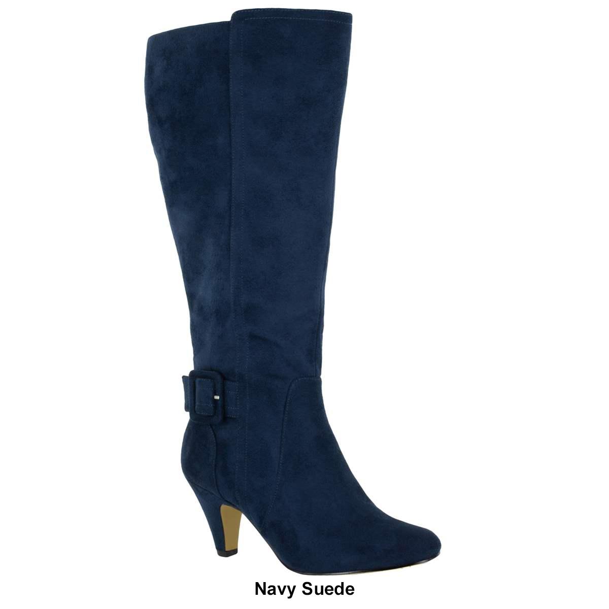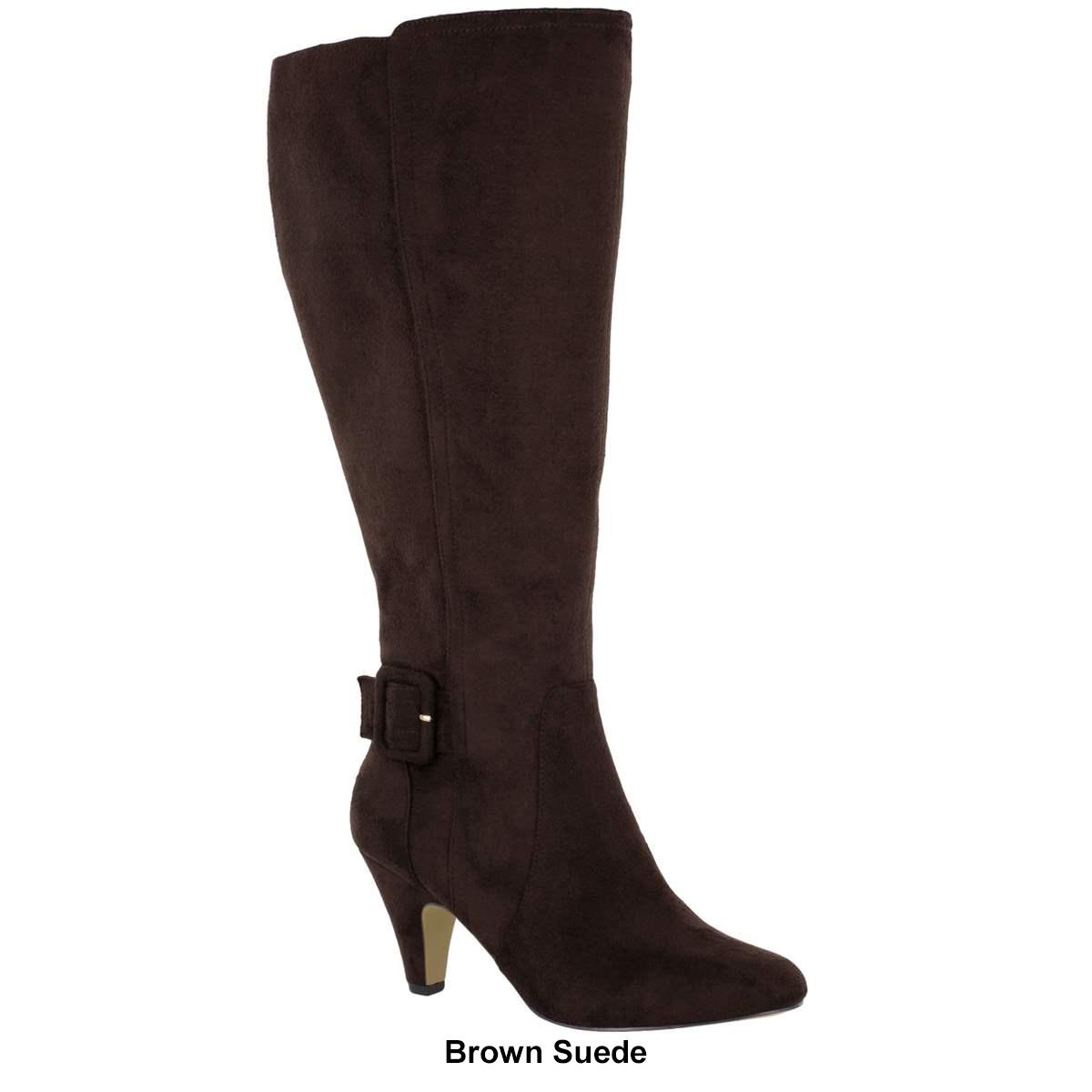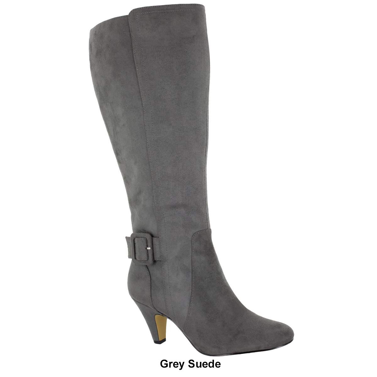 These Womens Bella Vita Troy II tall wide calf boots feature chic suede uppers with buckle strap detail, and an elastic finger gored topline. They include an inside zipper, microsuede lining, padded insoles, PU sock lining, durable rubber blended outsoles, and a self-covered heel.