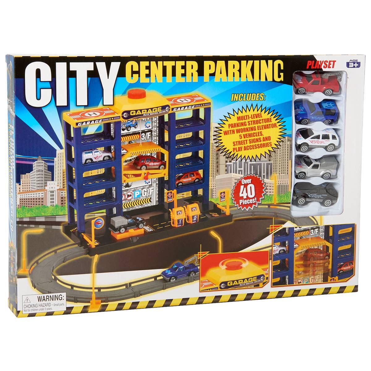 If your little one fancies himself a car lover he’ll get all revved up with this Sun-Mate city center parking. Has a working car elevator that can be lowered or lifted by turning the knob on top and a winding ramp to transport the vehicles. And the movable mechanics lift works just like those at the auto shop.WARNING: CHOKING HAZARD - Small Parts. Not for children under 3 years.