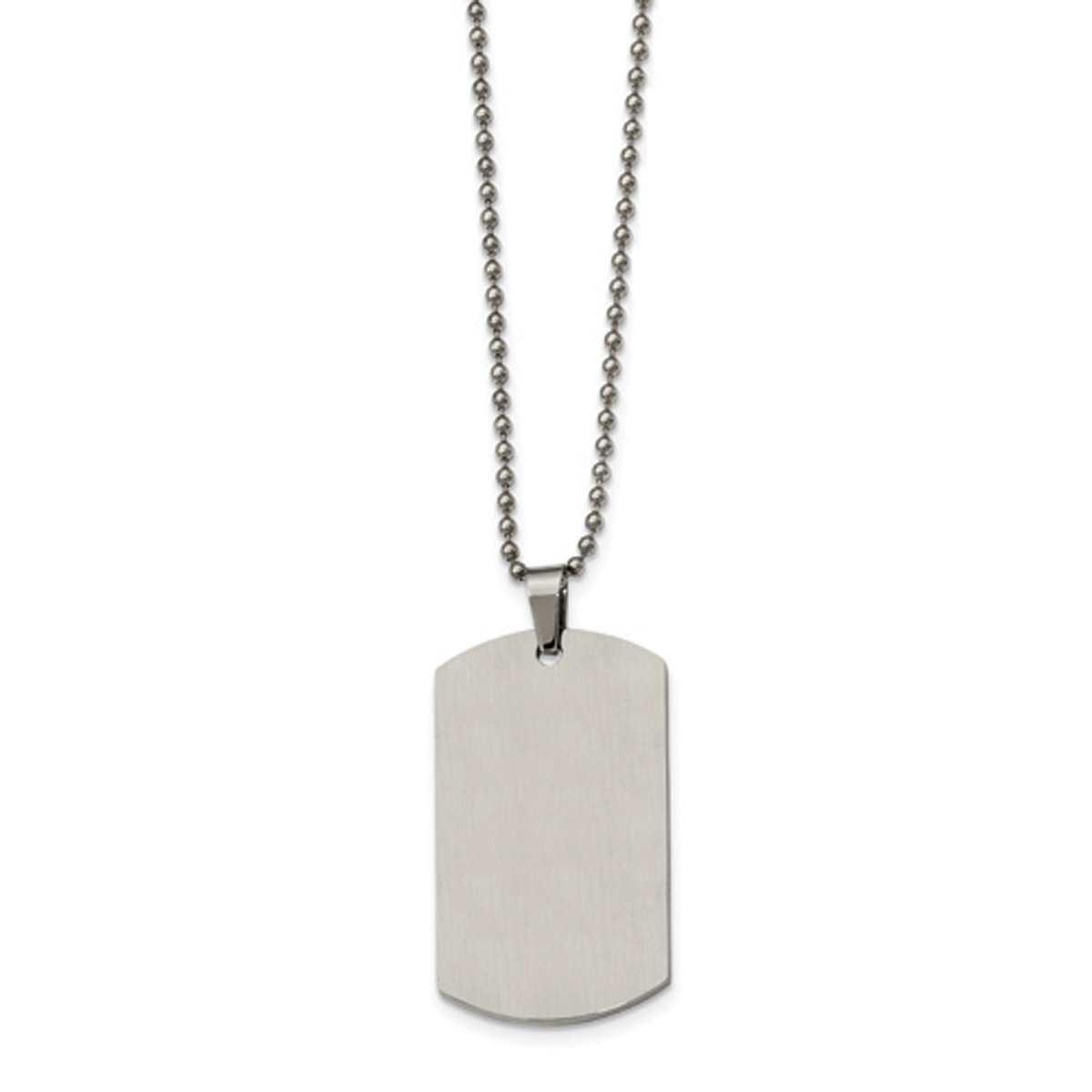This Mens Gentlemen´s Classics™ dog tag necklace showcases a rounded 2mm edge in a high polished stainless steel design that can be engraved. It hangs from a long ball chain that is secured with a fancy lobster clasp for closure.
