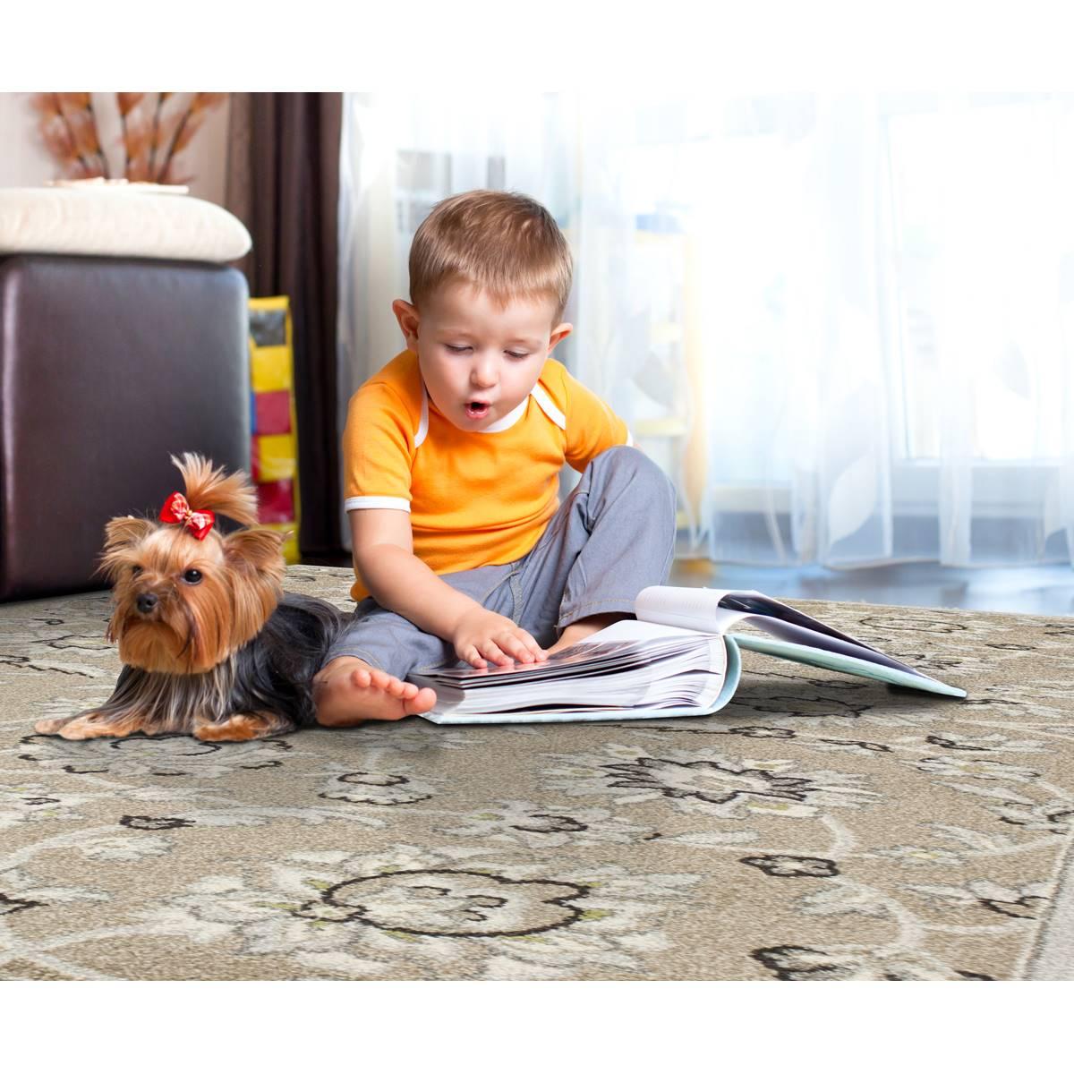 Bring a touch of elegance to any living space with the neutral colors and floral design of this KAS Lucia Beige Grey Verona rug that offers a sophisticated yet trendy look. When cleaning, vacuum with a floor attachment, spot clean with a mild detergent and blot spills immediately for a lasting look. If used outdoors can be hosed off and dried on flat surface.