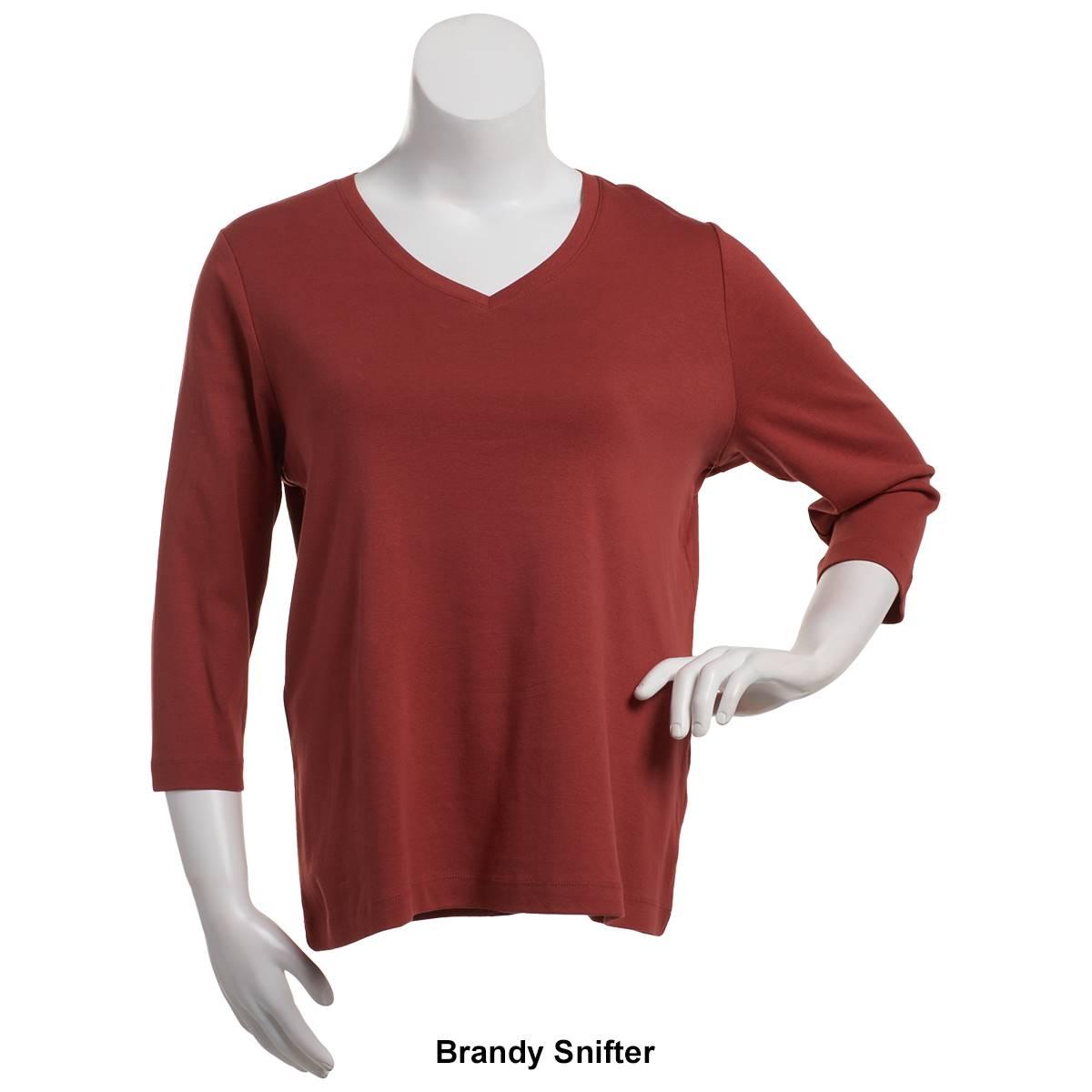 Plus Size Preswick & Moore® 3/4 Sleeve V-Neck Solid Tee
