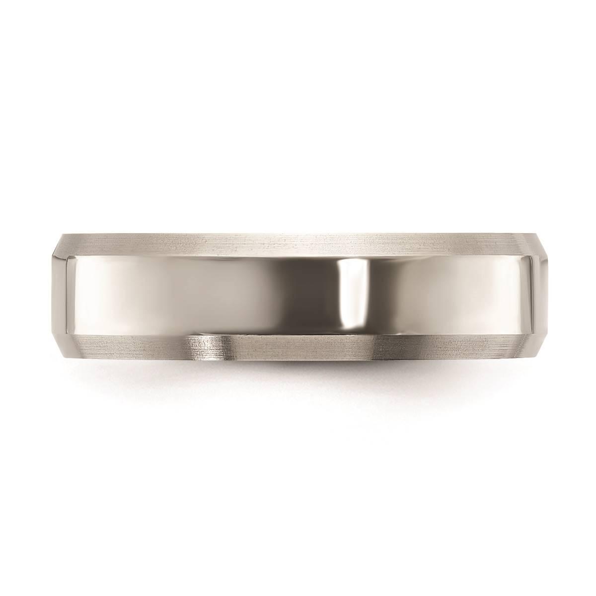 Description This Mens Fine Jewelry Collections Endless Affection™ titanium 6mm beveled edge wedding band is a beautiful way to say I Do! Its design can be engraved and includes...