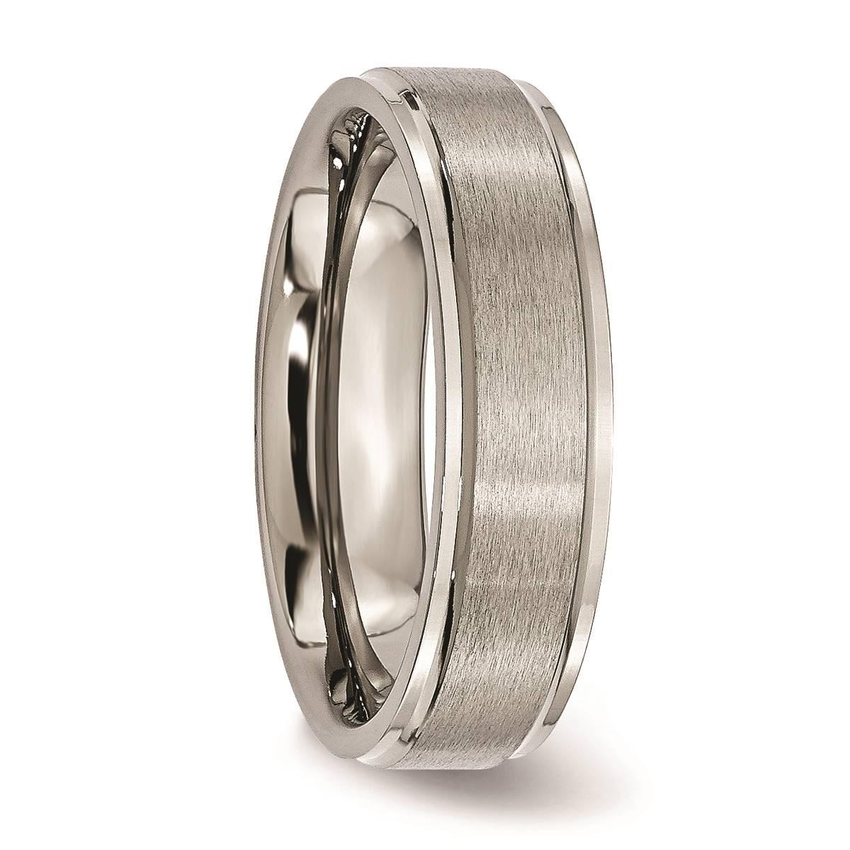 Description This Mens Fine Jewelry Collections Endless Affection™ titanium 6mm ridged edge wedding band is a beautiful way to say I Do! Its design can be engraved and includes...