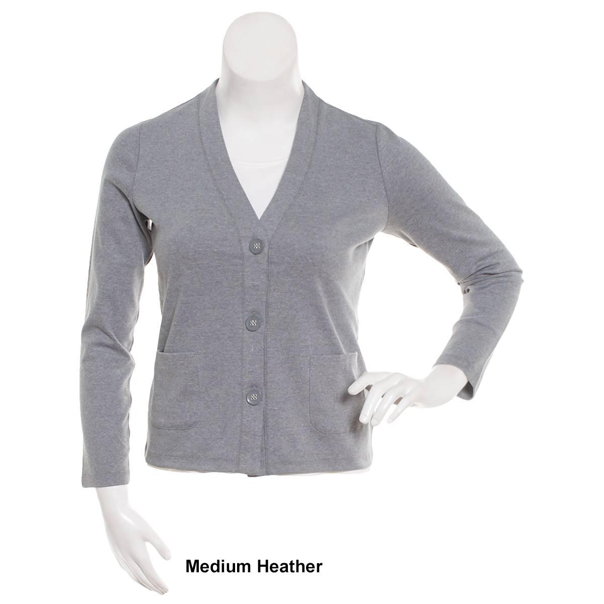 Add style to your casual look with this Petite Hasting & Smith functional button front cardigan. This solid cardigan offers long sleeves and a split neck.