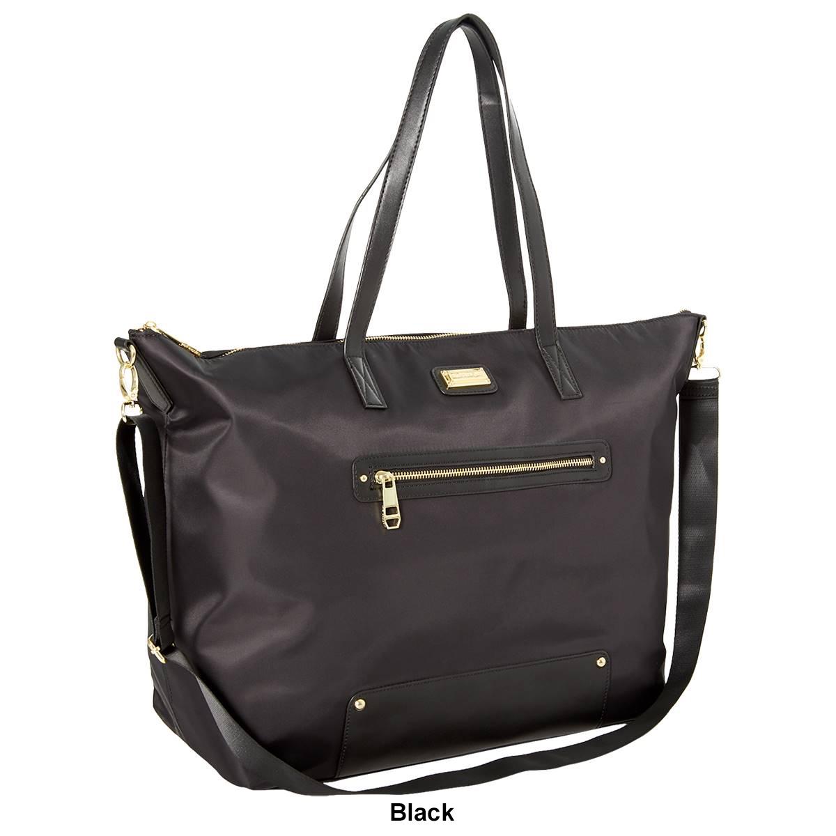 Turn traveling into an activity you do in style with this chic Madden Girl nylon overnighter, which can be carried over the shoulder with its adjustable strap or by hand with the dual drop handles. Features include an overlay detail, 1 exterior zip pocket, 1 interior zip pocket and 2 slit pockets.