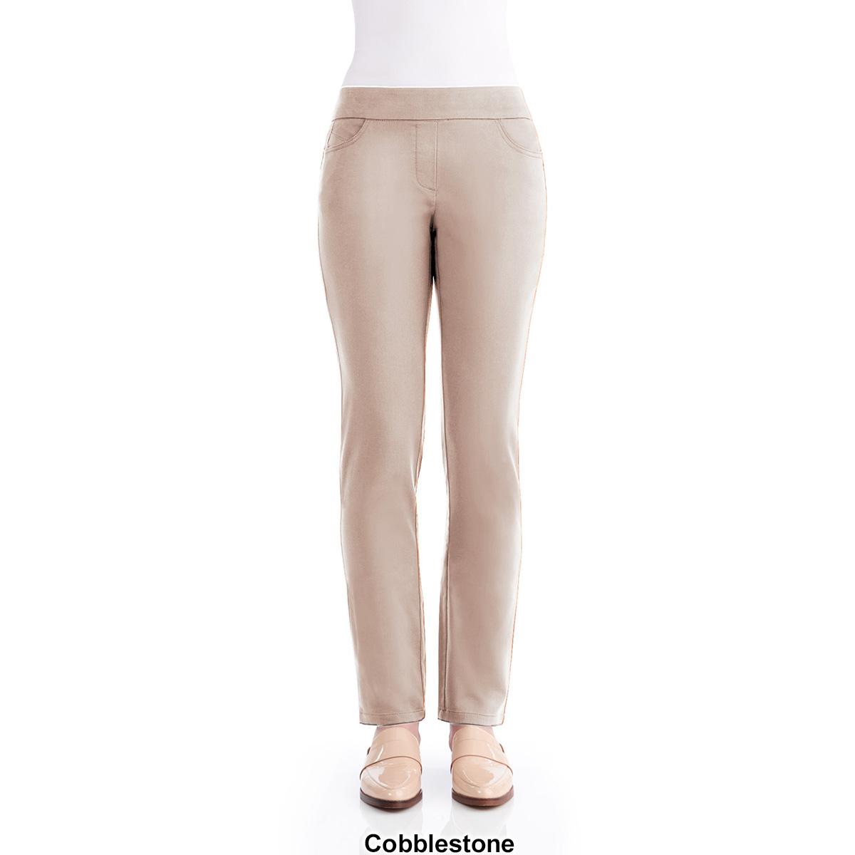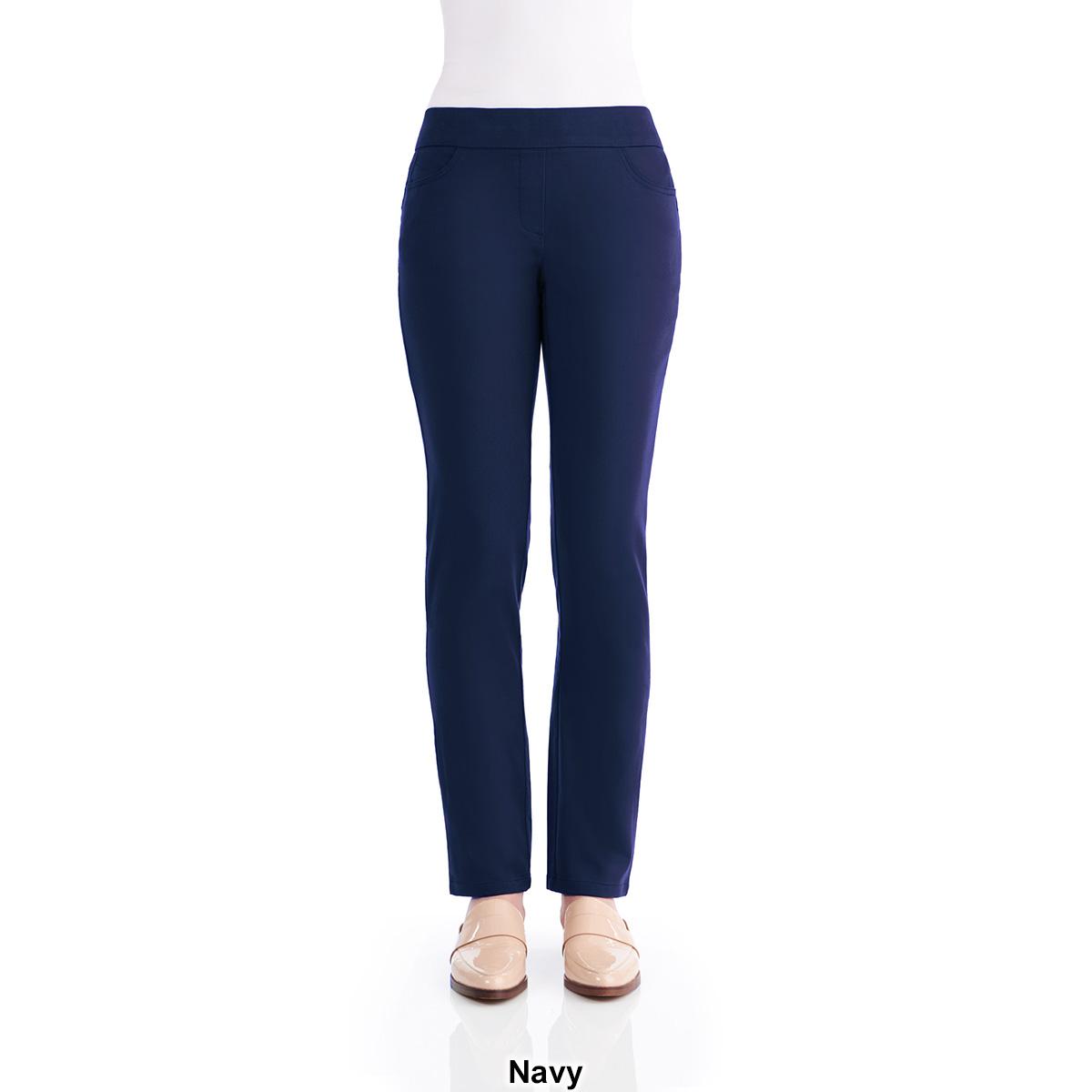 Feel at ease all day with the stretch Plus Size Napa Valley cotton super stretch pull on pant - short, which offers a hidden elasticized comfort waistband. These everyday pants feature a faux zip fly with front functional pockets.