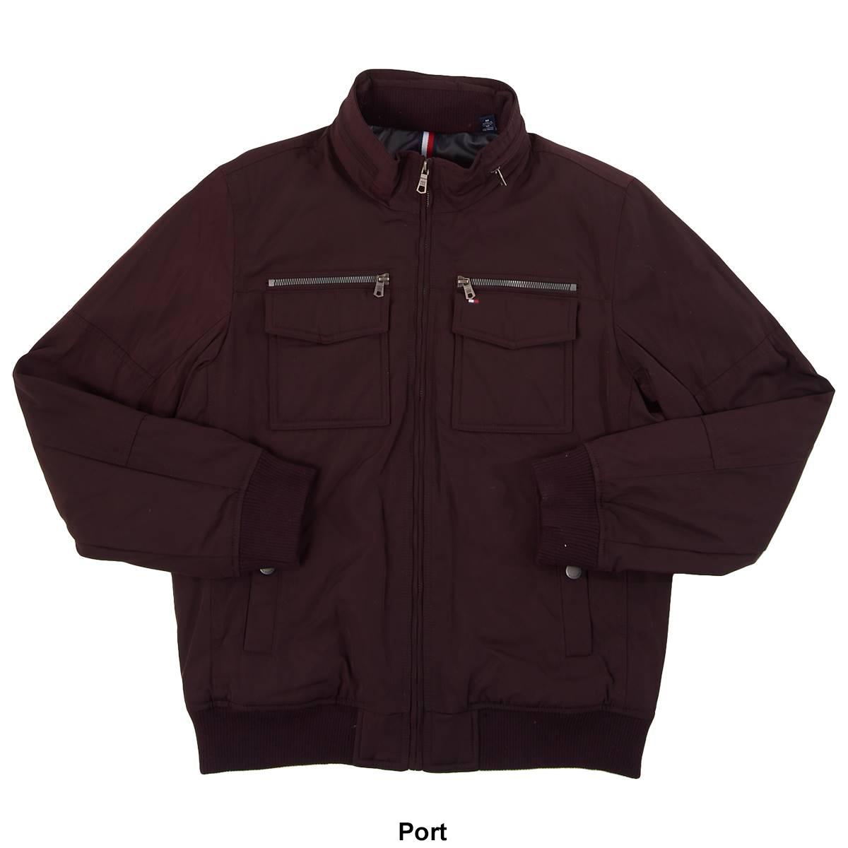 Upgrade your outerwear with this Mens Tommy Hilfiger Performance Water and Wind Resistant Bomber jacket. This full zip jacket has a concealable hood, four functional snap pockets, and two zipper chest pockets and zip inside pocket. This jacket also features a rib knit trim. Look sharp and keep warm all at the same time!