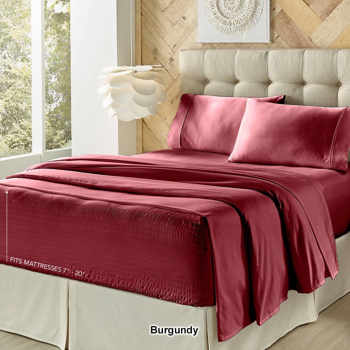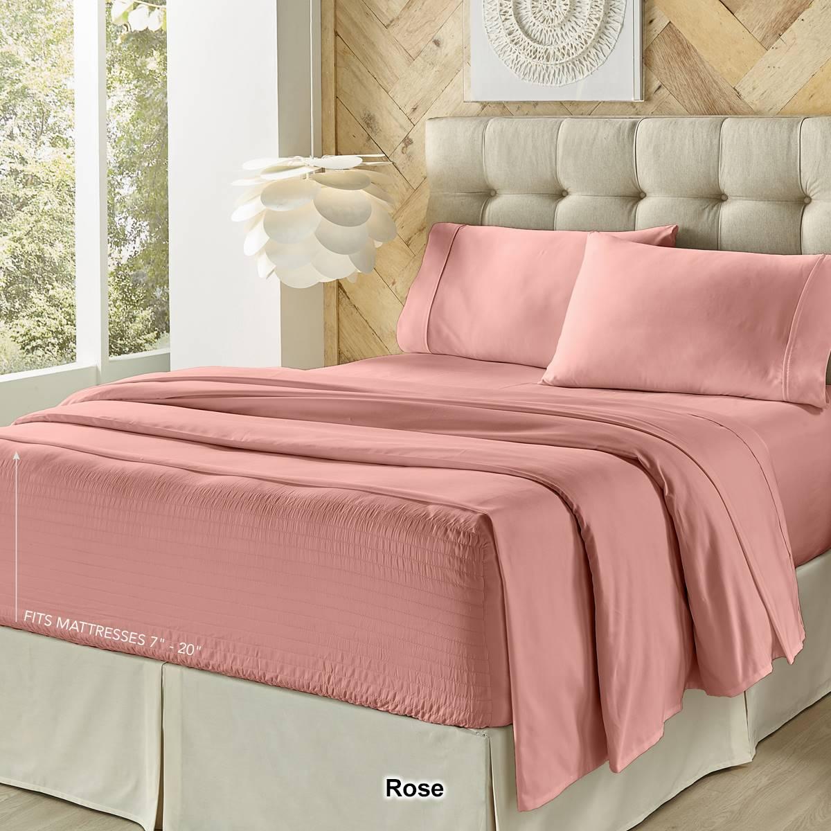 Add a luxurious feel to your bedding with this super soft Five Queens Court plush microfiber 4 piece sheet set. Featuring Royal Fit Technology, a patented design, which guarantees to fit every mattress perfectly, every time. The unique fitted sheet construction stretches to fit the deepest mattress, mattress toppers, and works great with smaller low profile mattresses. Unlike most fitted sheets that do not fit well or stay in place throughout the night, our fitted sheet solution will never shift or slip off. The plush poly microfiber fabric gives the sheet set a soft to the touch hand feel. Available in multiple on-trend fashionable colors to fit any bedroom décor.