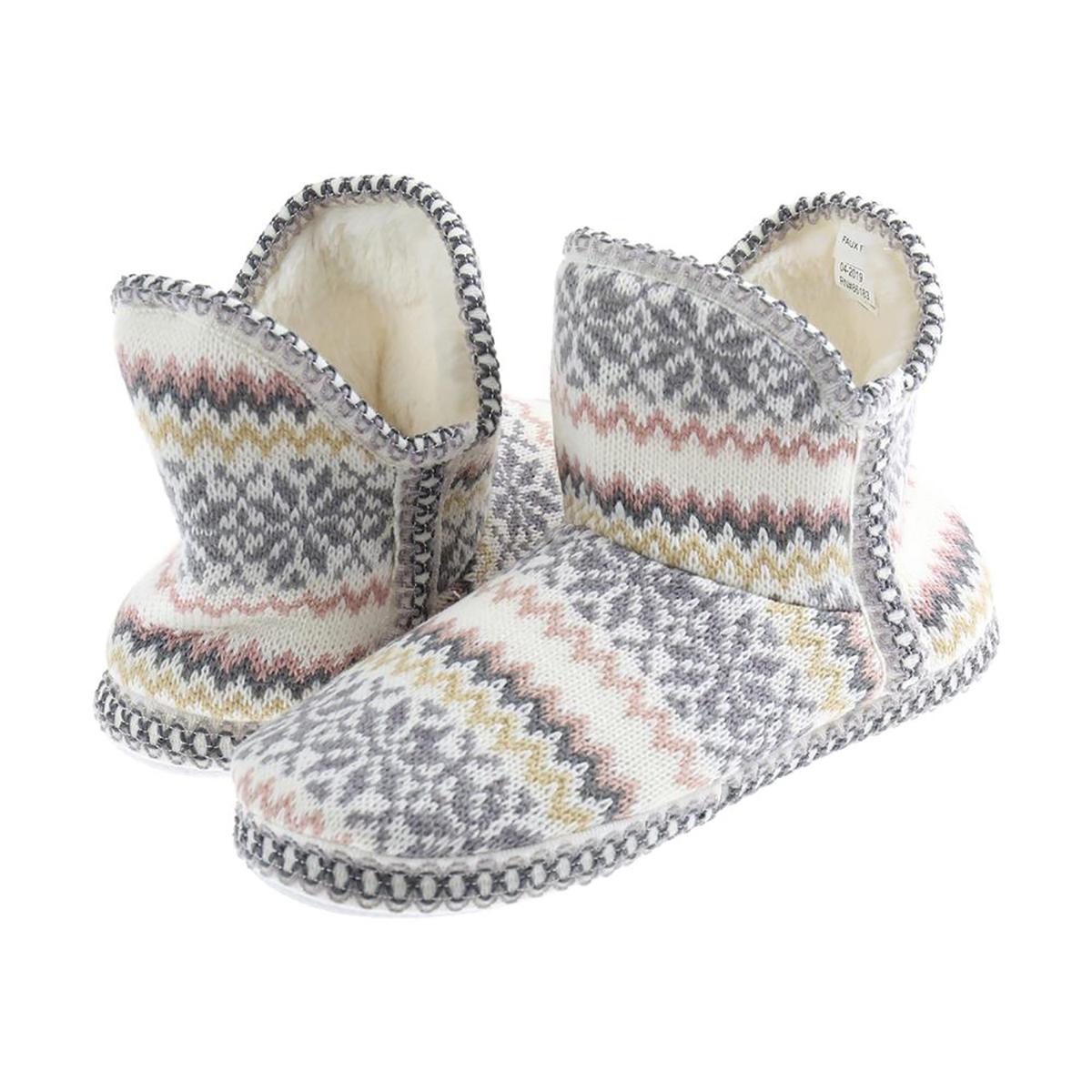 Take sleep preparation to new levels in these Womens Capelli New York fair isle knit booties. These cozy slippers feature whipstitching and a faux-fur sock on a fabric-covered outsole.