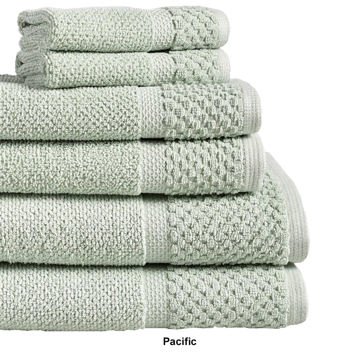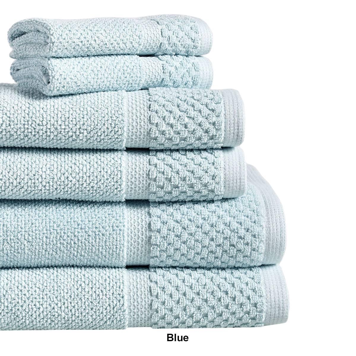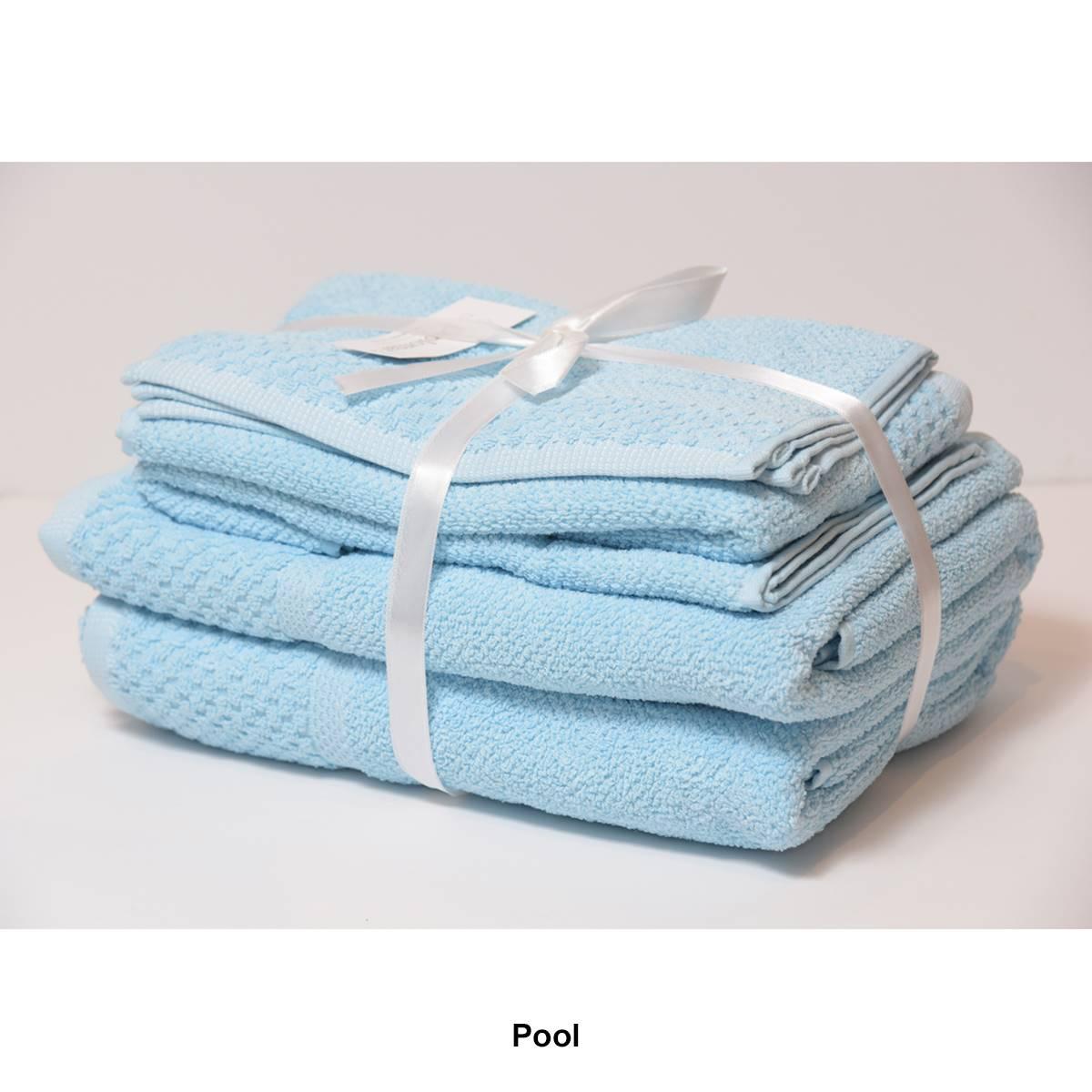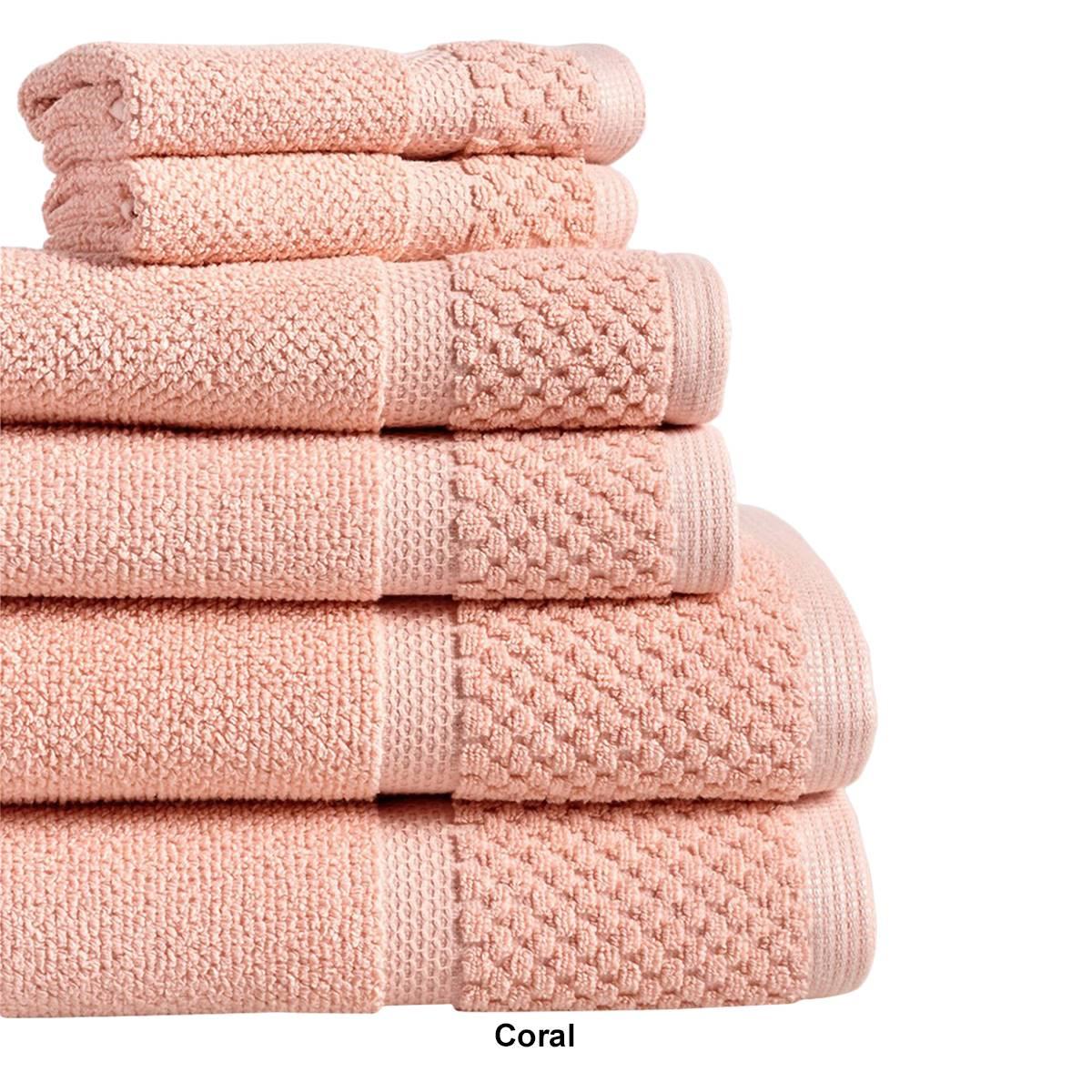 Solid textured towel with a wide waffle border. Diplomat towels feature allover body with a dobby hem border. The diplomat towels are super soft and the pretty pastel palette adds elegance and style.