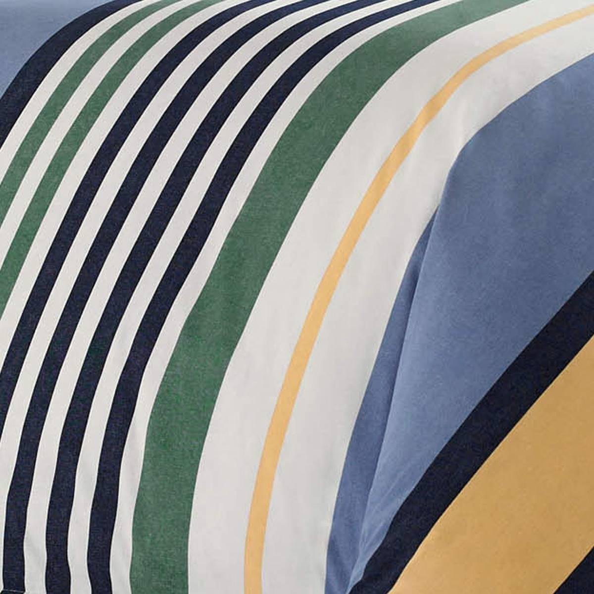 Create a crisp, refreshing atmosphere in your bedroom with the Nautica Dover comforter set. Adorned with horizontal bands of green, chambray and yellow, the stunning, striped bedding instantly brings a clean, relaxed feel to any room´s décor. Pillow sham features coordinating stripes in green, chambray and yellow for a clean, relaxed feel.