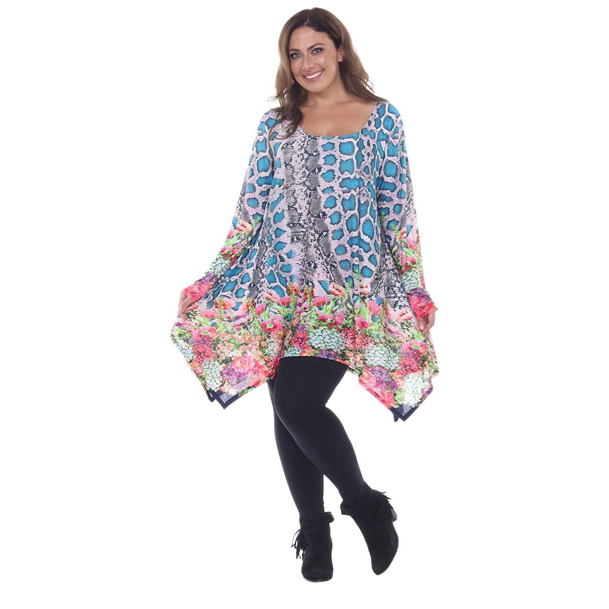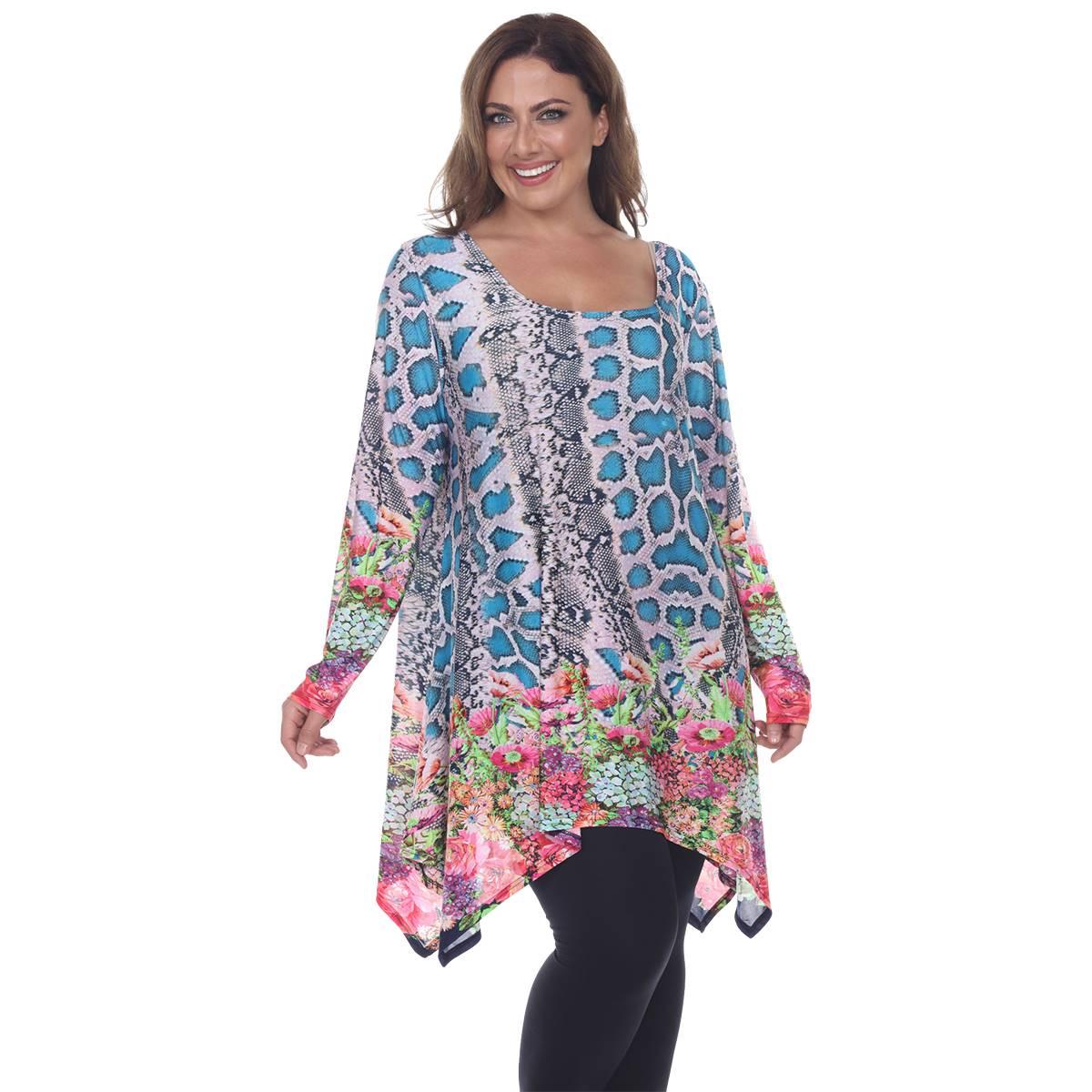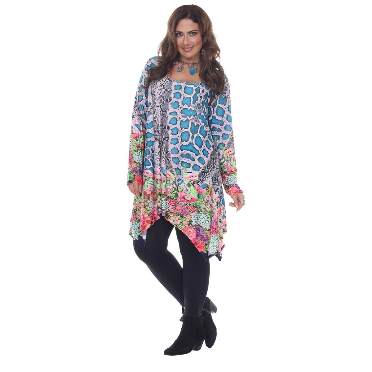 Description This flattering stretch Plus Size White Mark® Marlene tunic drapes stunningly on your body. With a bold, flirty print, glimmering embellishments along the scoop...