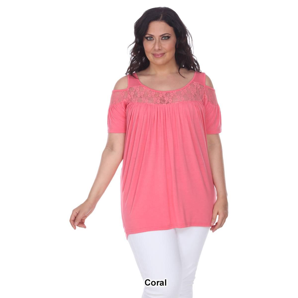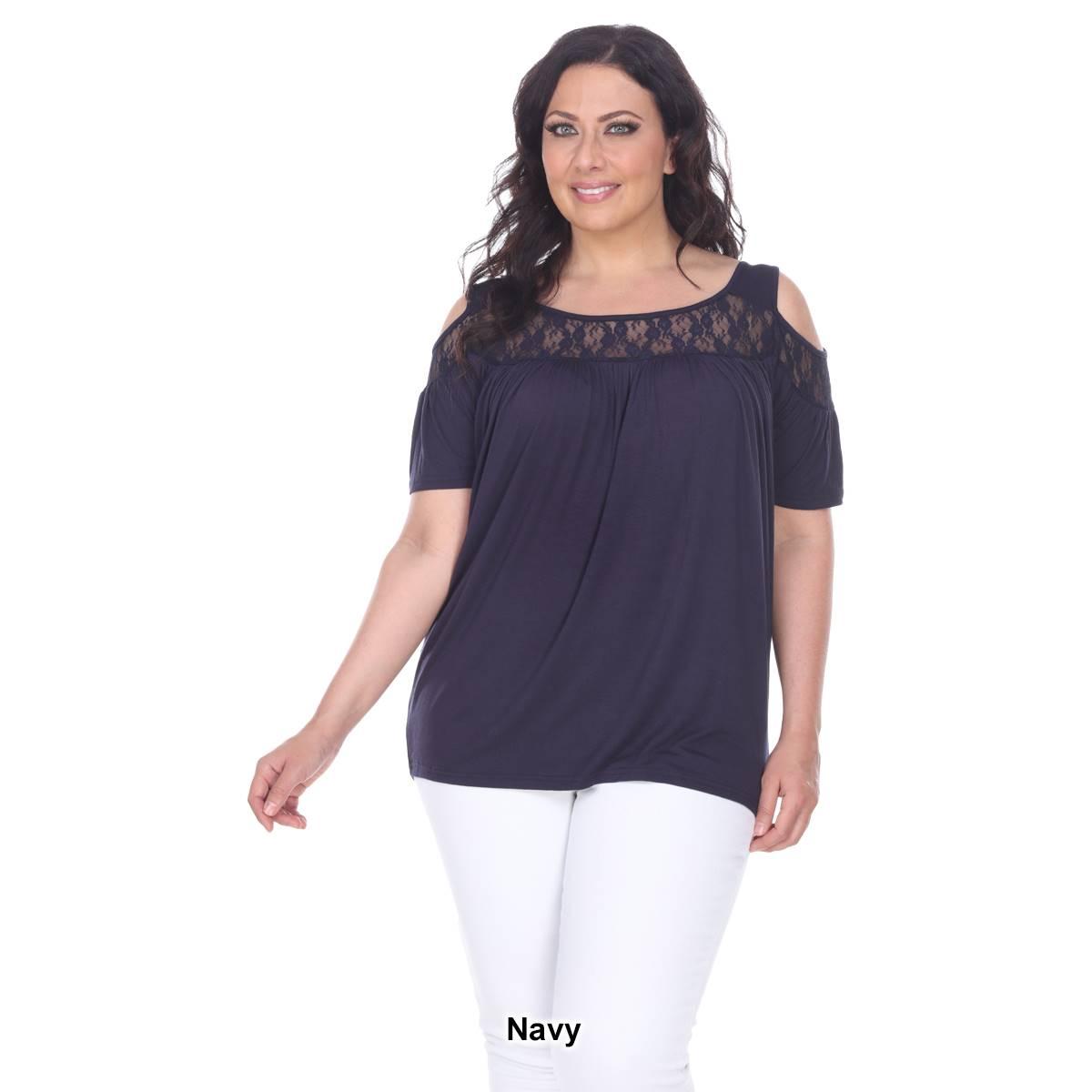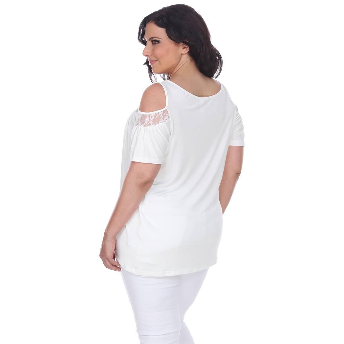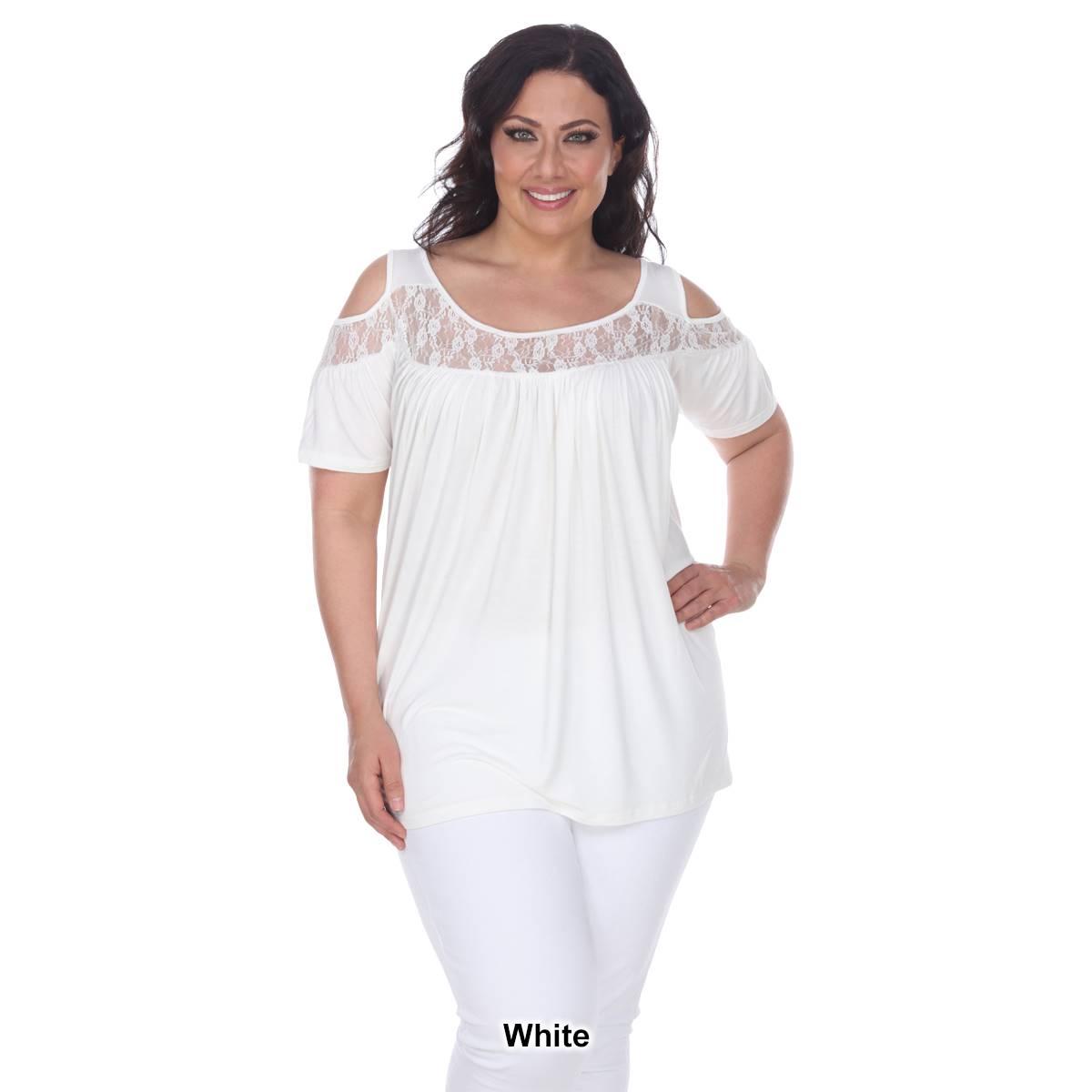 Description Step up your style with this super cute cold shoulder cut out Plus Size White Mark® Bexley tunic. It has lace yoke inserts around the scoop neckline and on the...