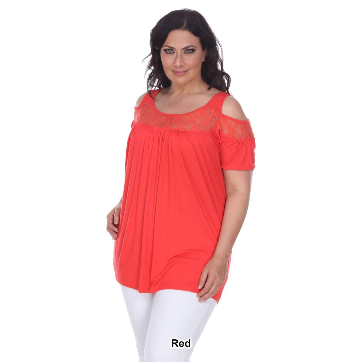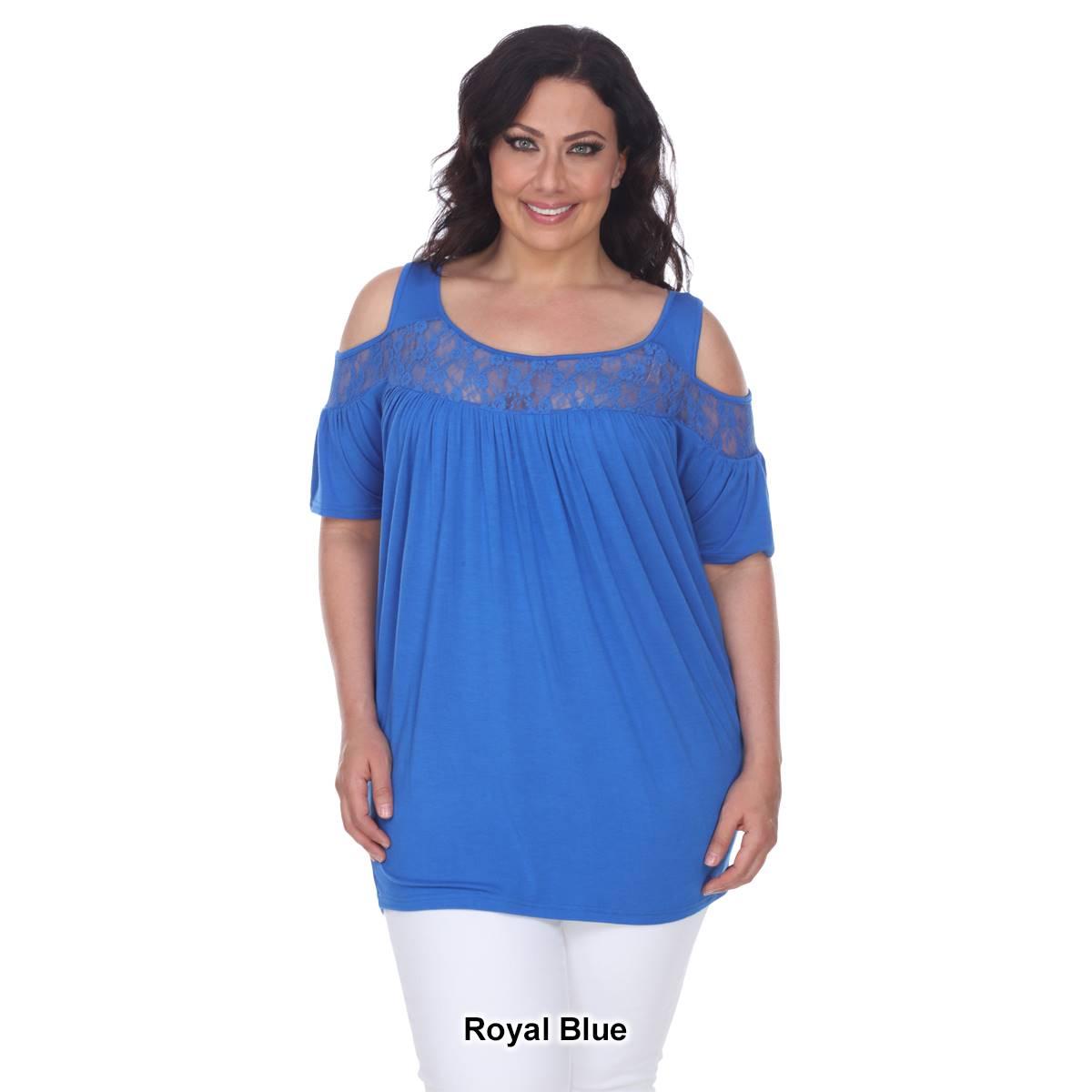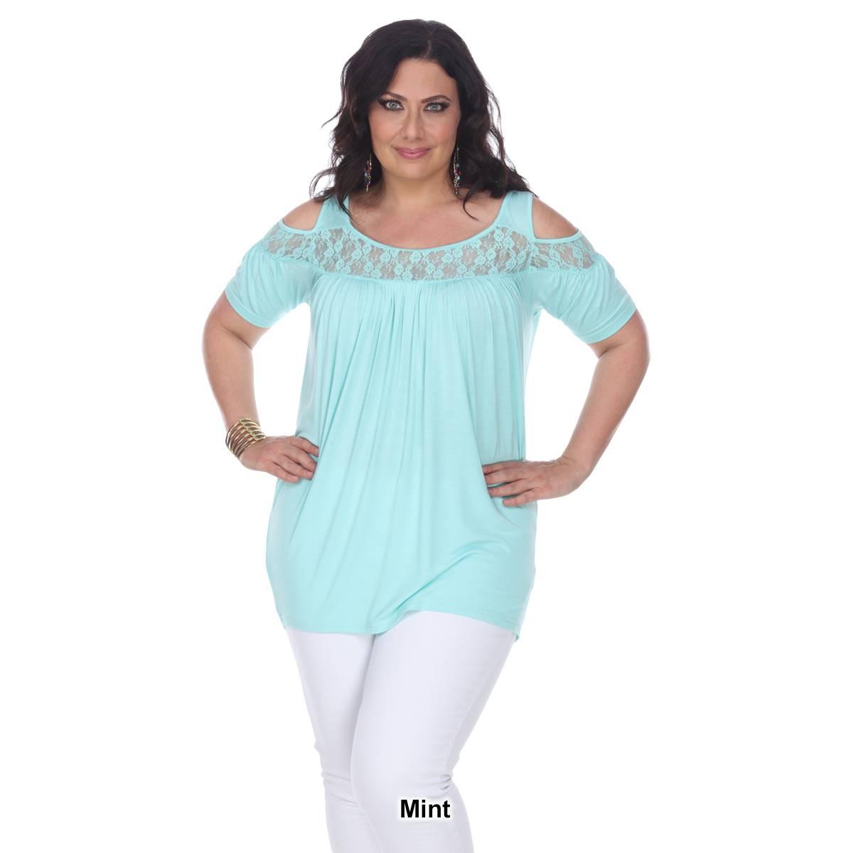 Description Step up your style with this super cute cold shoulder cut out Plus Size White Mark® Bexley tunic. It has lace yoke inserts around the scoop neckline and on the...