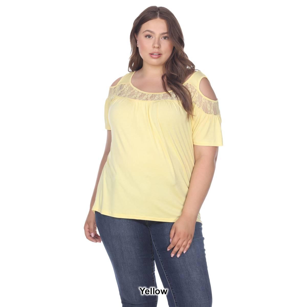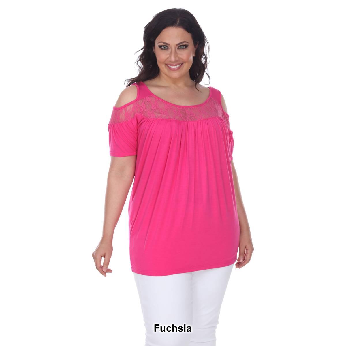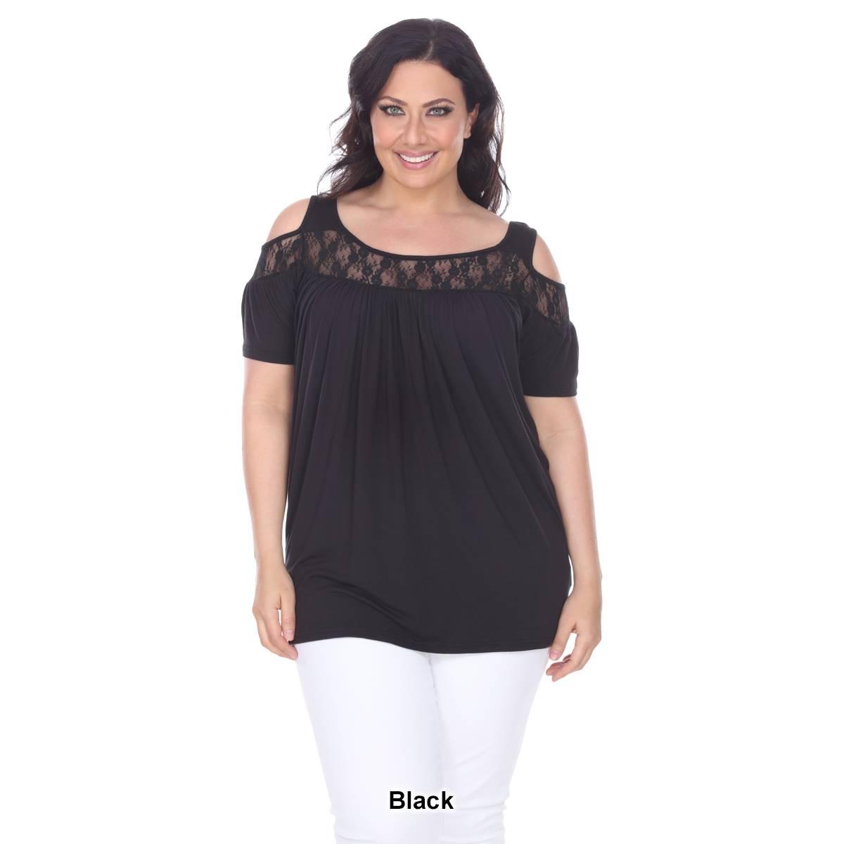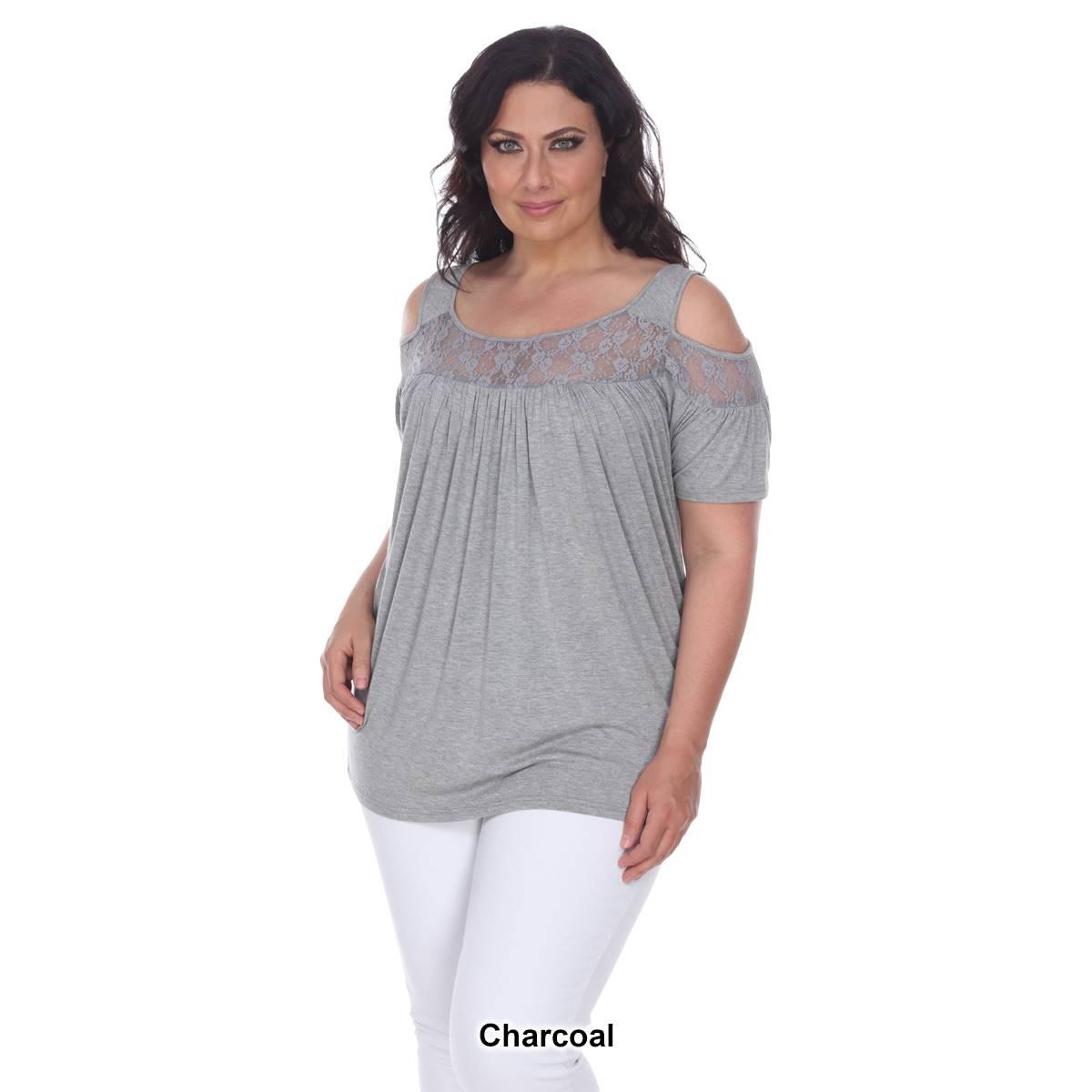 Description Step up your style with this super cute cold shoulder cut out Plus Size White Mark® Bexley tunic. It has lace yoke inserts around the scoop neckline and on the...