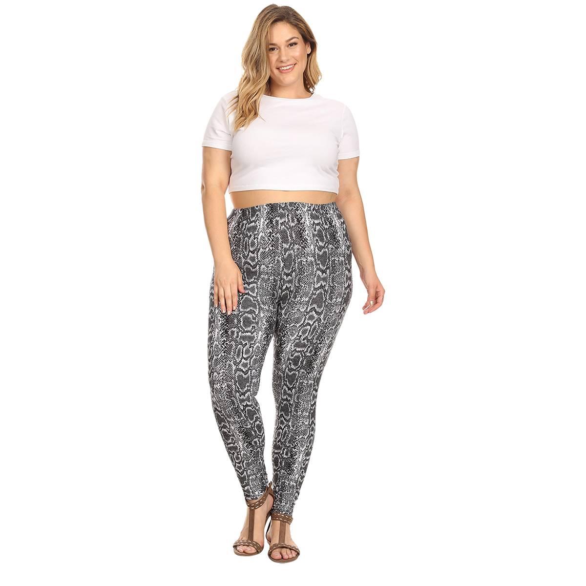 Pair these Plus Size White Mark® leggings with any top and shoes for a simple, casual look. The snakeskin print makes for a fun stylish look and can amp up any outfit. Made from a spandex and polyester blend, these leggings are comfortable and soft against the skin.