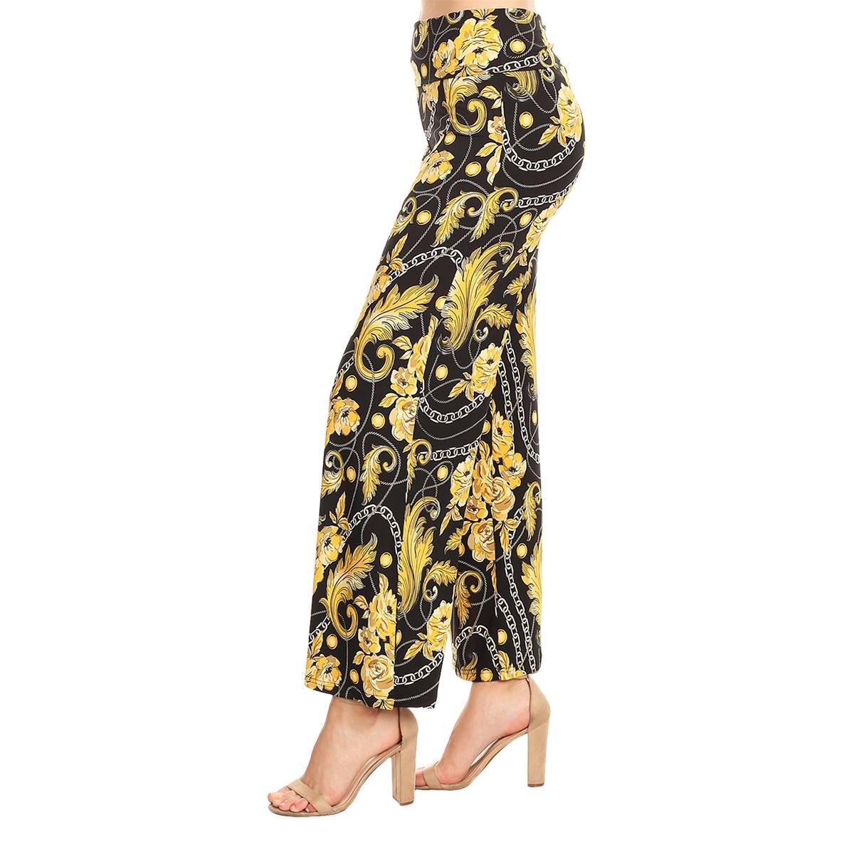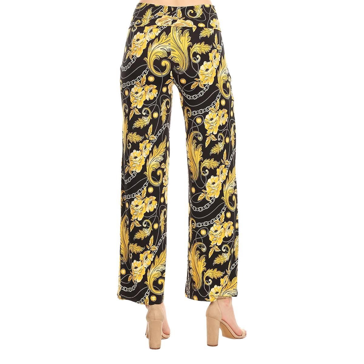 Description Amp up your wardrobe with these Womens White Mark popular wide-legged palazzo pants in a black and gold print. You will feel comfortable and relaxed, yet well-dressed...