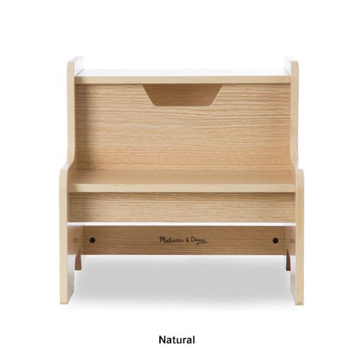 This Melissa & Doug® step stool will give kids a leg up with this sturdy two step wooden stool! It will fit with any home décor and is great for helping kids reach books and toys in the playroom, climb into bed at night, brush their teeth and wash their hands at the bathroom sink, or help out in the kitchen at mealtimes. Spot clean only.