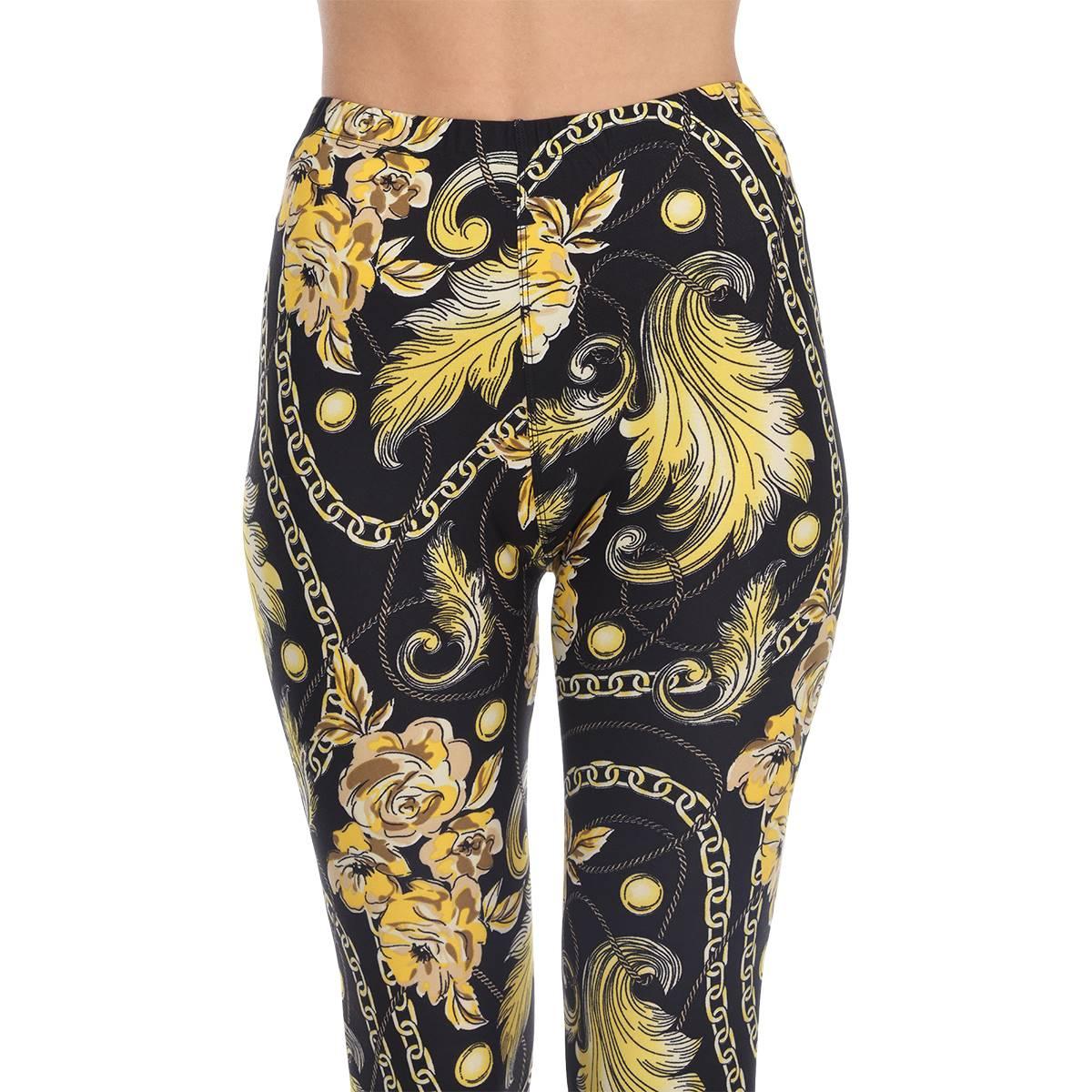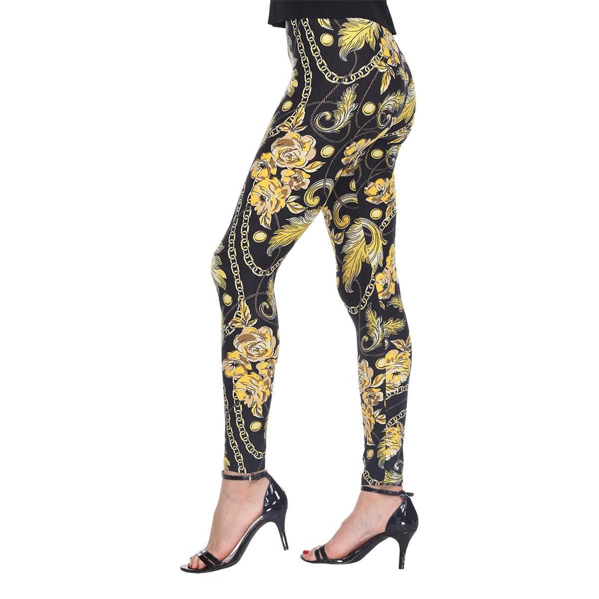 Description Amp up your wardrobe with these Womens White Mark popular black and gold print leggings. Pair them with any top and shoes for a simple, casual look. Made from a...