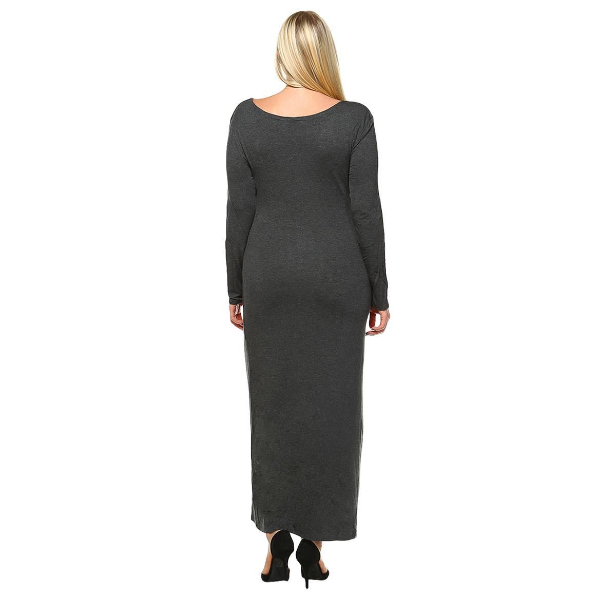 This White Mark plus size Ria dress will become your favorite go-to. Made of stretchy material with long sleeves and a scoop neck. The knit design and maxi length create the perfect everyday style.