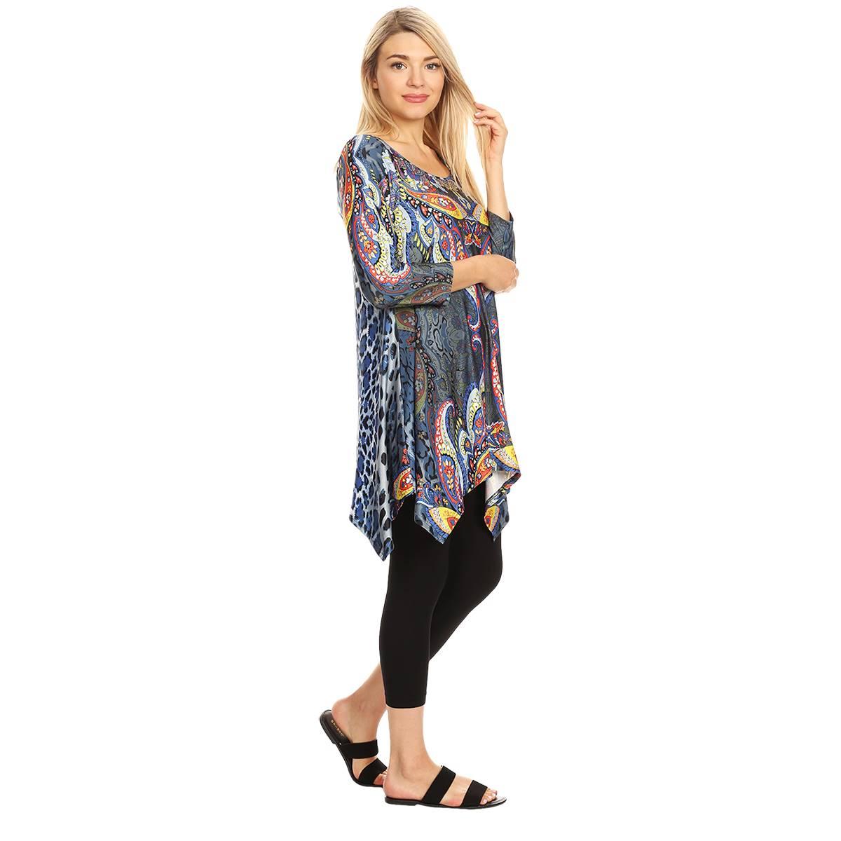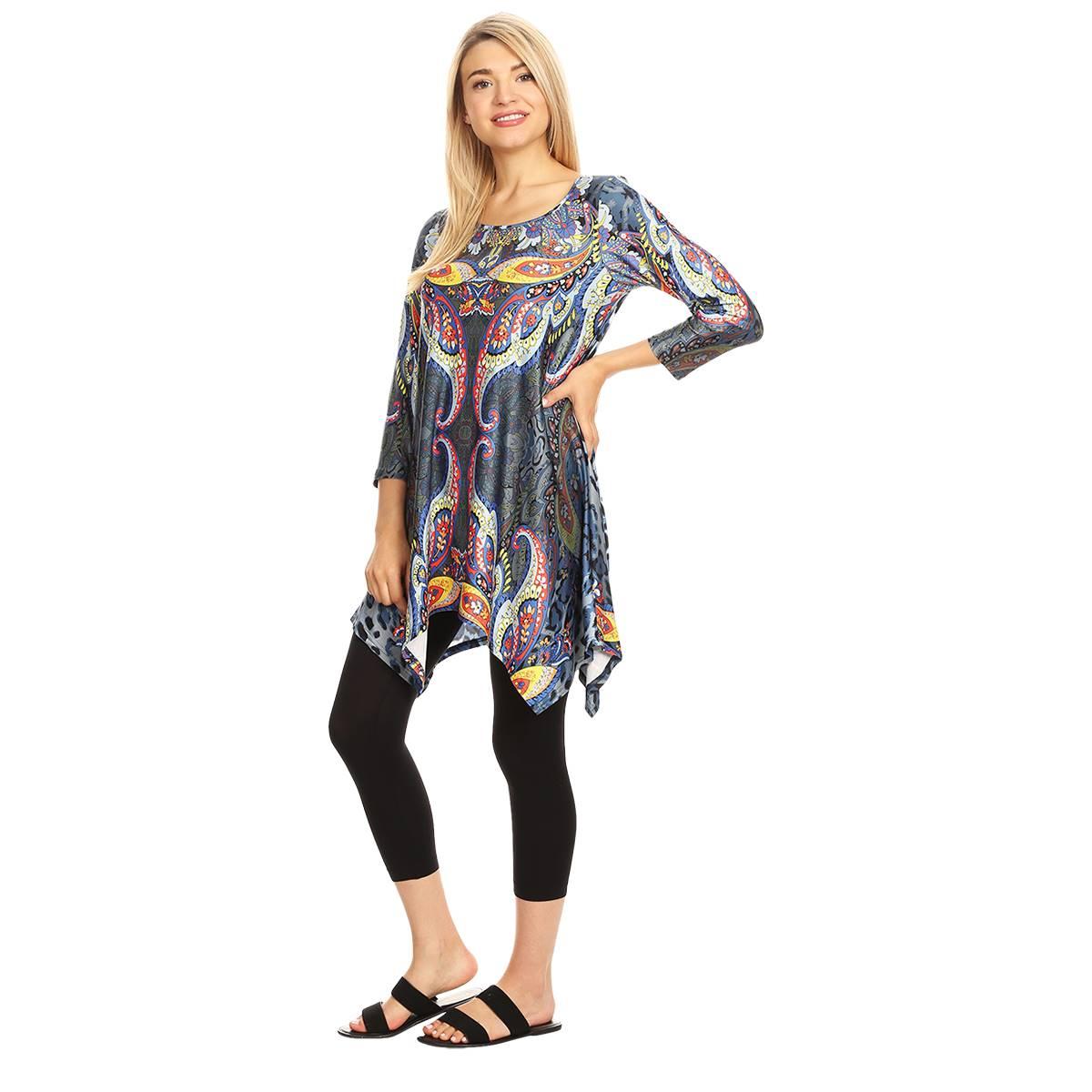 Description This flattering Womens White Mark Marlene tunic drapes stunningly over the body. With a bold, novelty print, a scoop neckline, and 3/4 length sleeves, you are sure to...