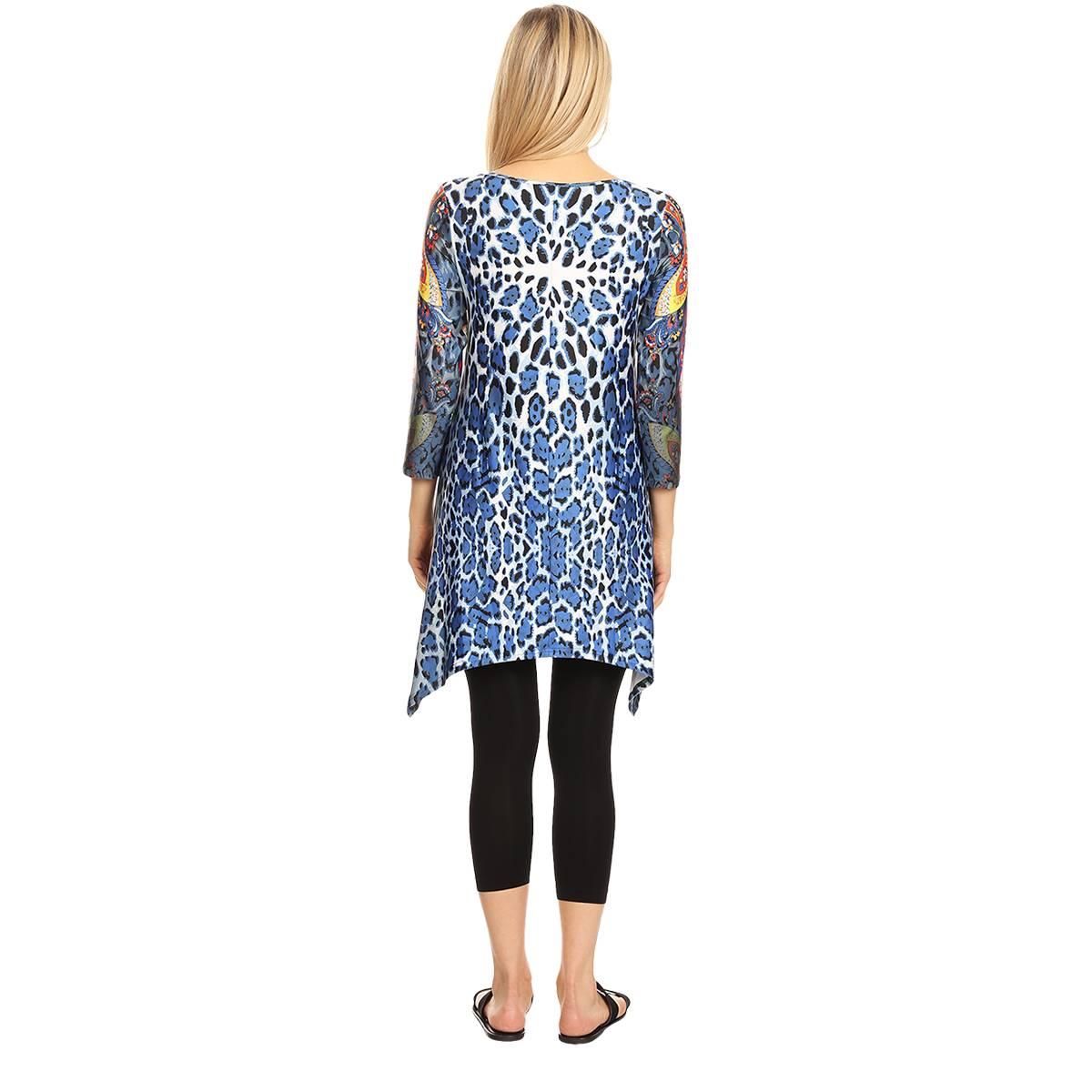 Womens White Mark Marlene Blue Novelty Print Tunic