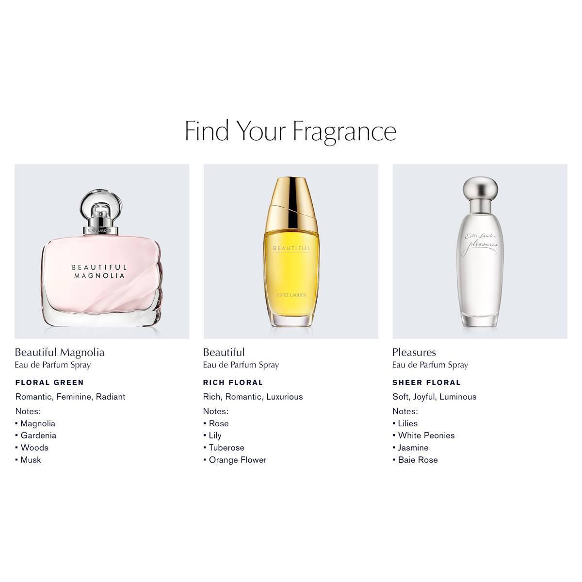 Description Estée Lauder™ Beautiful Eau de Parfum Romantic, feminine, memorable. The fragrance of a thousand flowers. A rich blend of Rose, Lily, Tuberose and Orange Flower....
