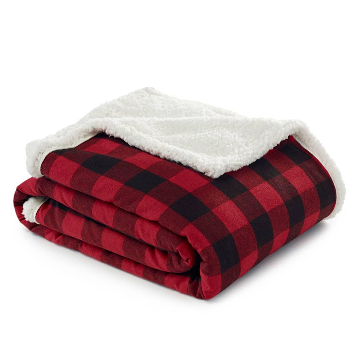 Bring rustic style to your home décor with the Eddie Bauer Cabin plaid sherpa throw and pillow set. This throw and coordinating pillow are warm and cozy, available in red or black. Add wilderness style and warmth to your home.