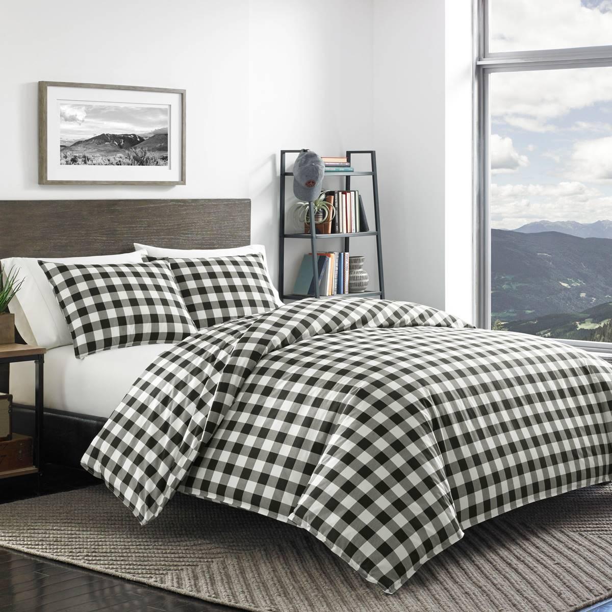 Description This Eddie Bauer Mountain Plaid duvet set features a classic plaid pattern in shades of black and red or black and white adding a touch of rustic, cabin-inspired...