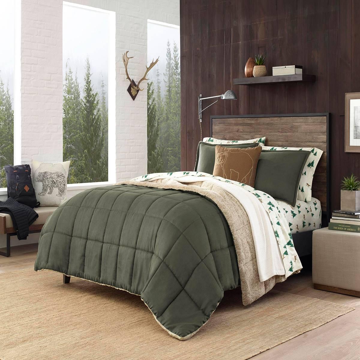 Slumber in comfort all night long between the sheets of this Eddie Bauer Deer Hollow flannel sheet set. This set features deer and trees on a beige background that can fit into any room decor. The 8-leveled brushing process and woven cotton yarns, ensures a comfortable, very soft and cozy finish.