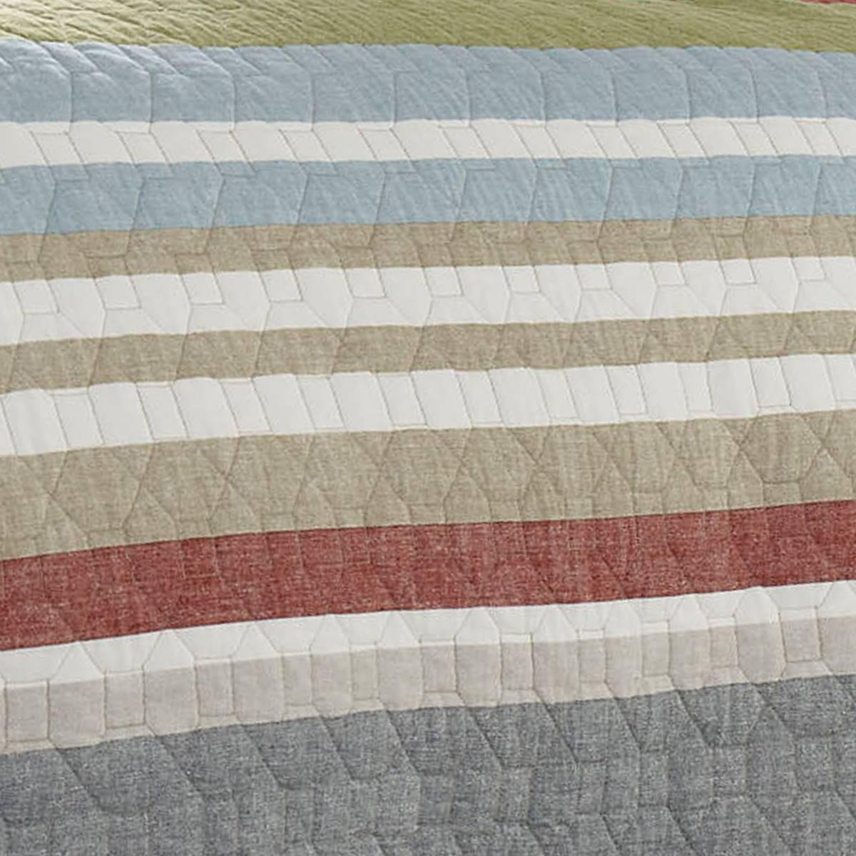 Description This Eddie Bauer Salmon Ladder Stripe quilt set features a multi color stripe in a mixed neutral palette of khaki and greys with bright accents of scarlet, denim...