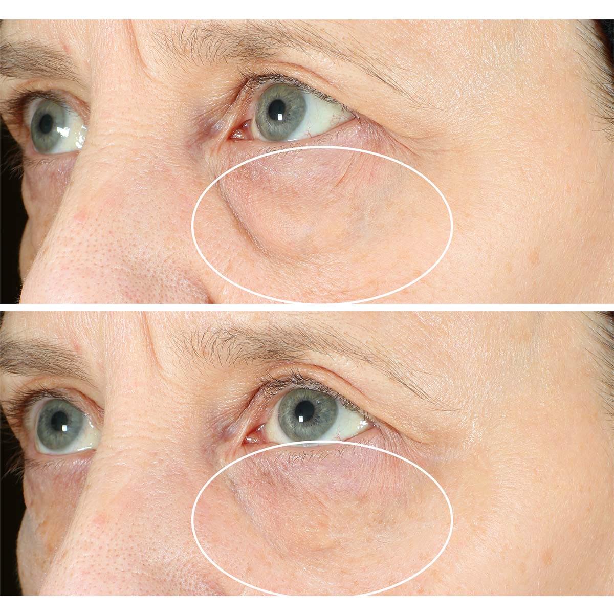 Breakthrough tightening treatment visibly erases eye bags, puffiness, lines & crepey texture.