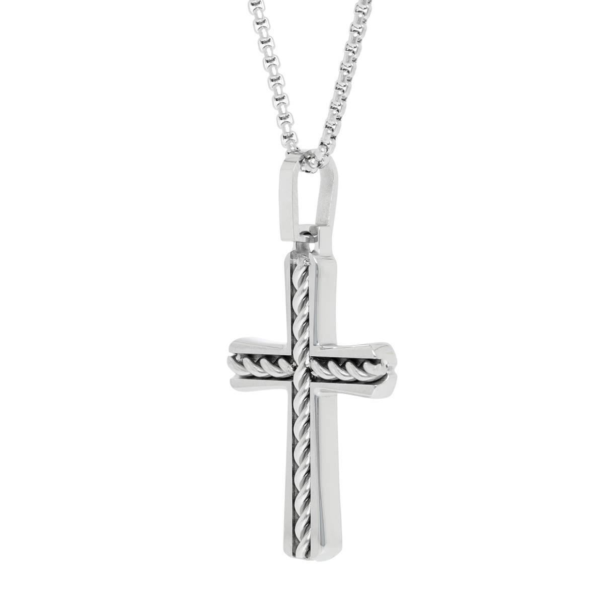The Lynx Stainless Steel Chain Cross Pendant Necklace is a bold and stylish accessory for men. The necklace features a robust stainless steel chain paired with a striking cross pendant. The cross is crafted from durable stainless steel, offering a sleek and modern appearance that complements the necklace´s rugged design. This piece is perfect for those who appreciate classic symbolism with a contemporary edge.