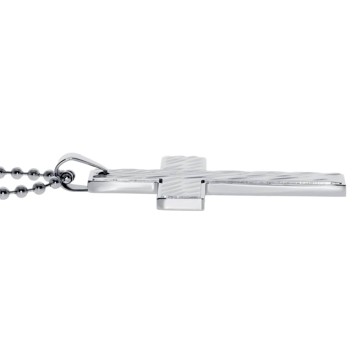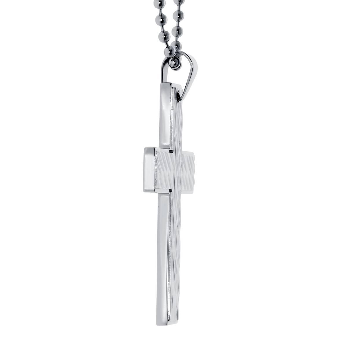 Description This Mens Lynx stainless steel textured cross pendant is showcased on a 22 inch ball chain. Chain Length: 22" Lobster Claw Material: Stainless Steel Online Only Item...