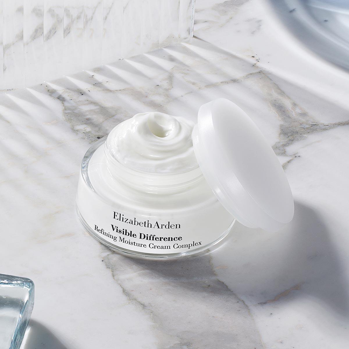 Description Elizabeth Arden visible difference refining moisture cream provides an occlusive barrier to prevent moisture loss. Tests show a significant reduction in the...