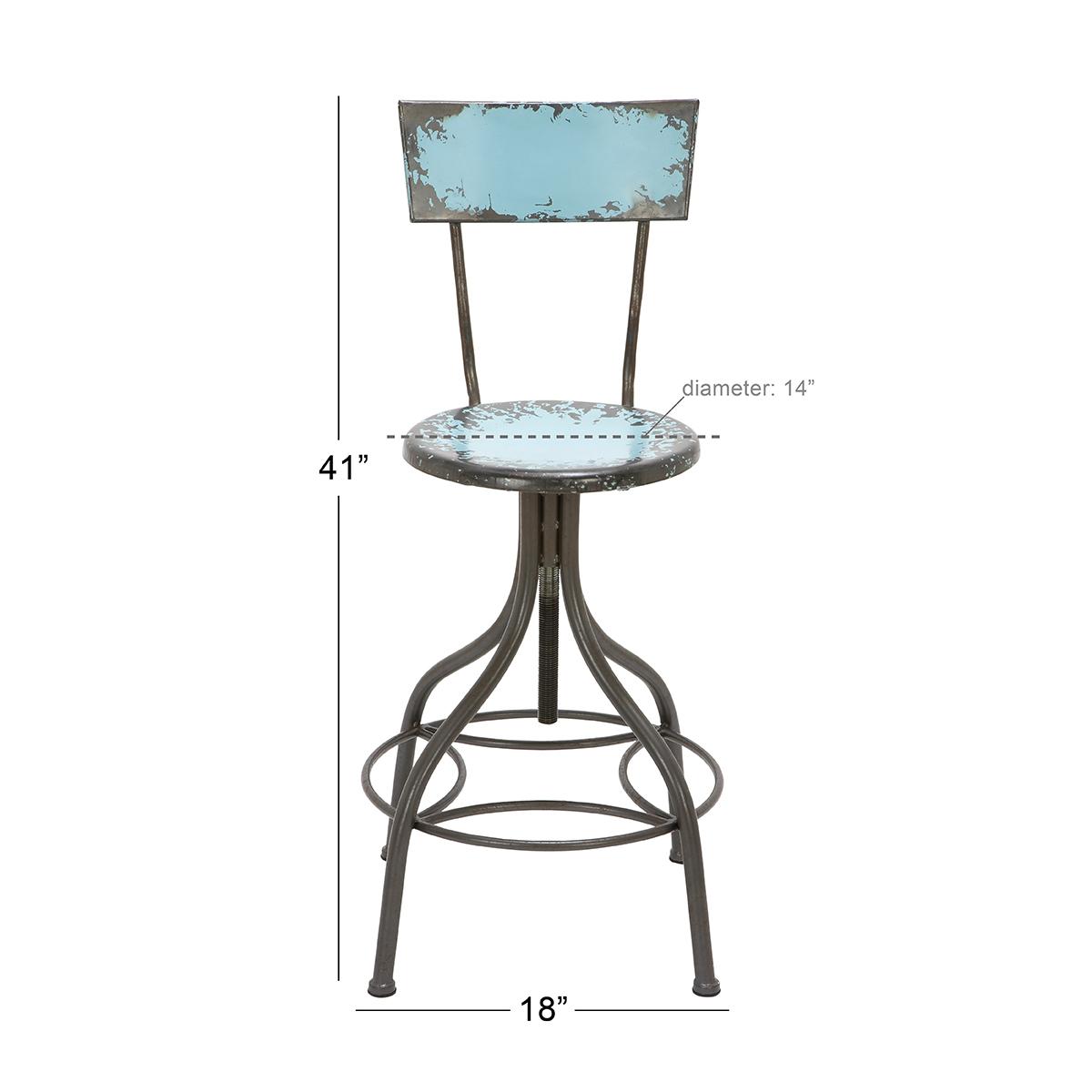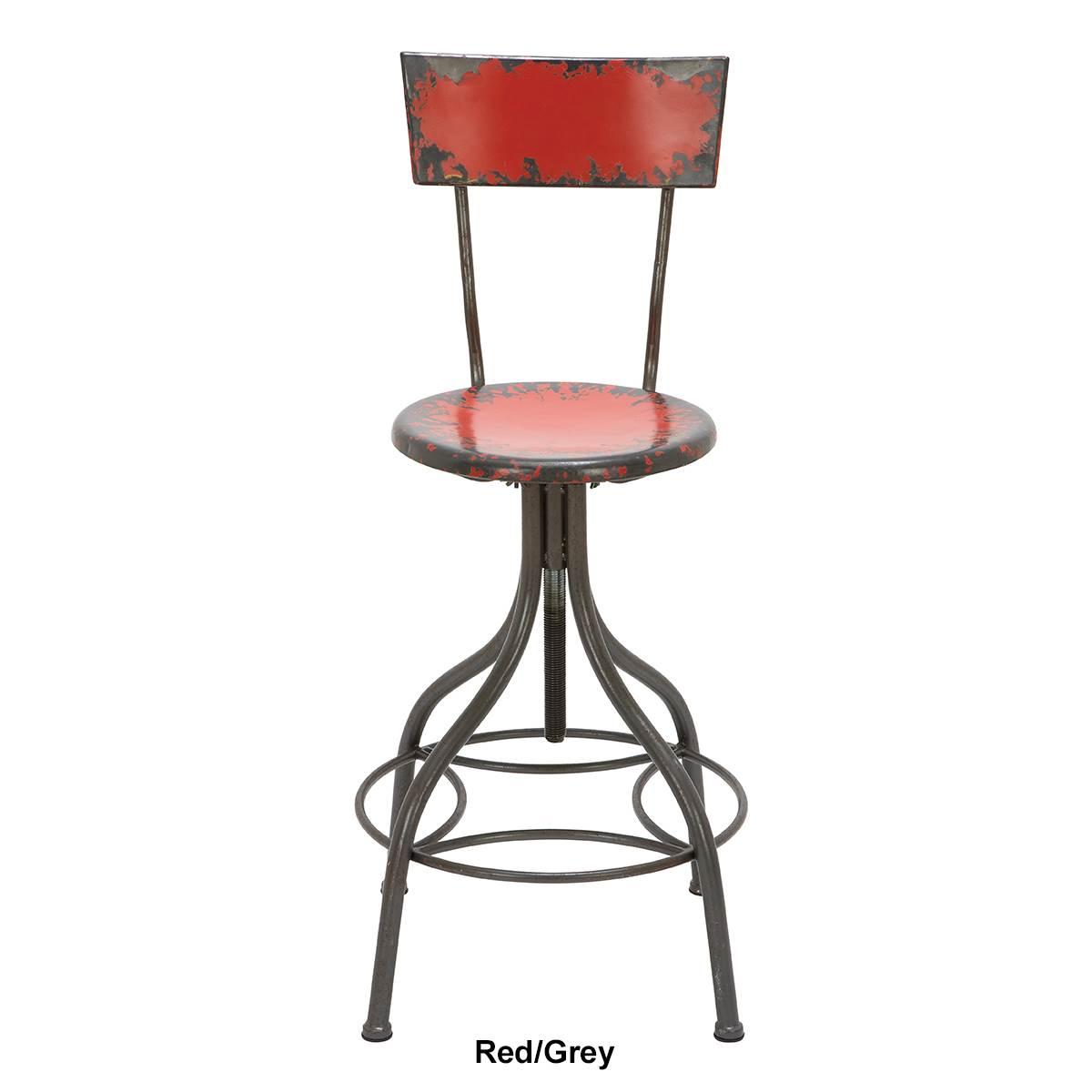 This 9th & Pike® grey metal vintage bar chair makes for a great set or simply as a single stand-alone piece of vintage accent furniture with a splash of color. A vintage style metal bar stool with a distressed finish. The rectangular seat back and round seat both have heavy distressing on the outside, revealing the metallic silver iron beneath.