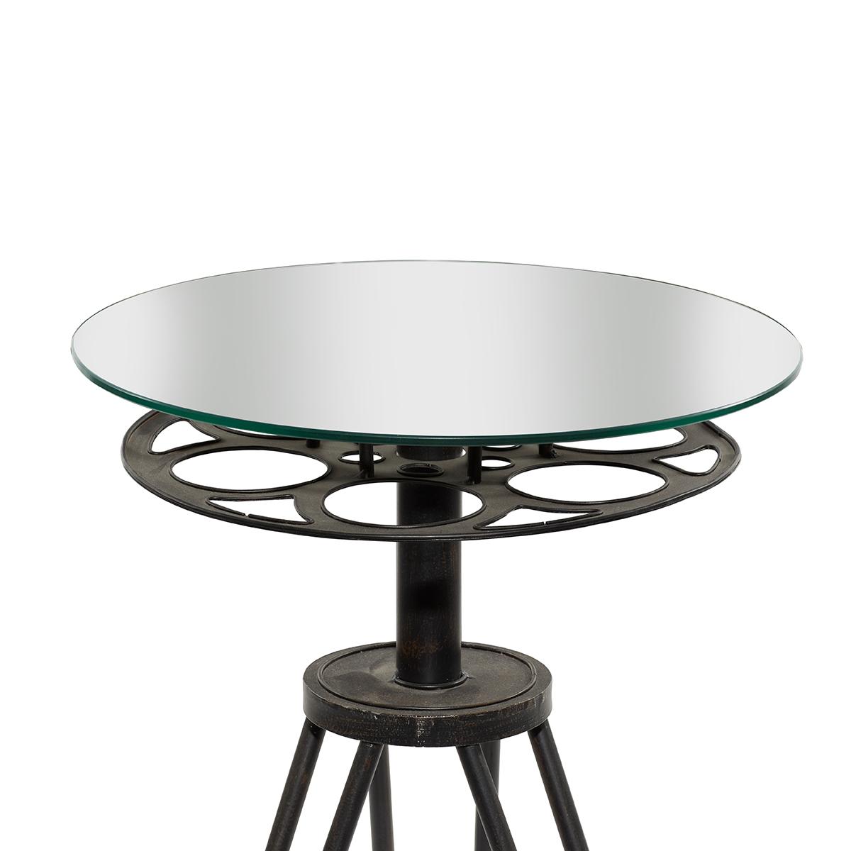 Description This 9th & Pike® classic camera reel accent table with black finish is a refined and stunning statement piece that gives a rich look to your home. An accent décor...