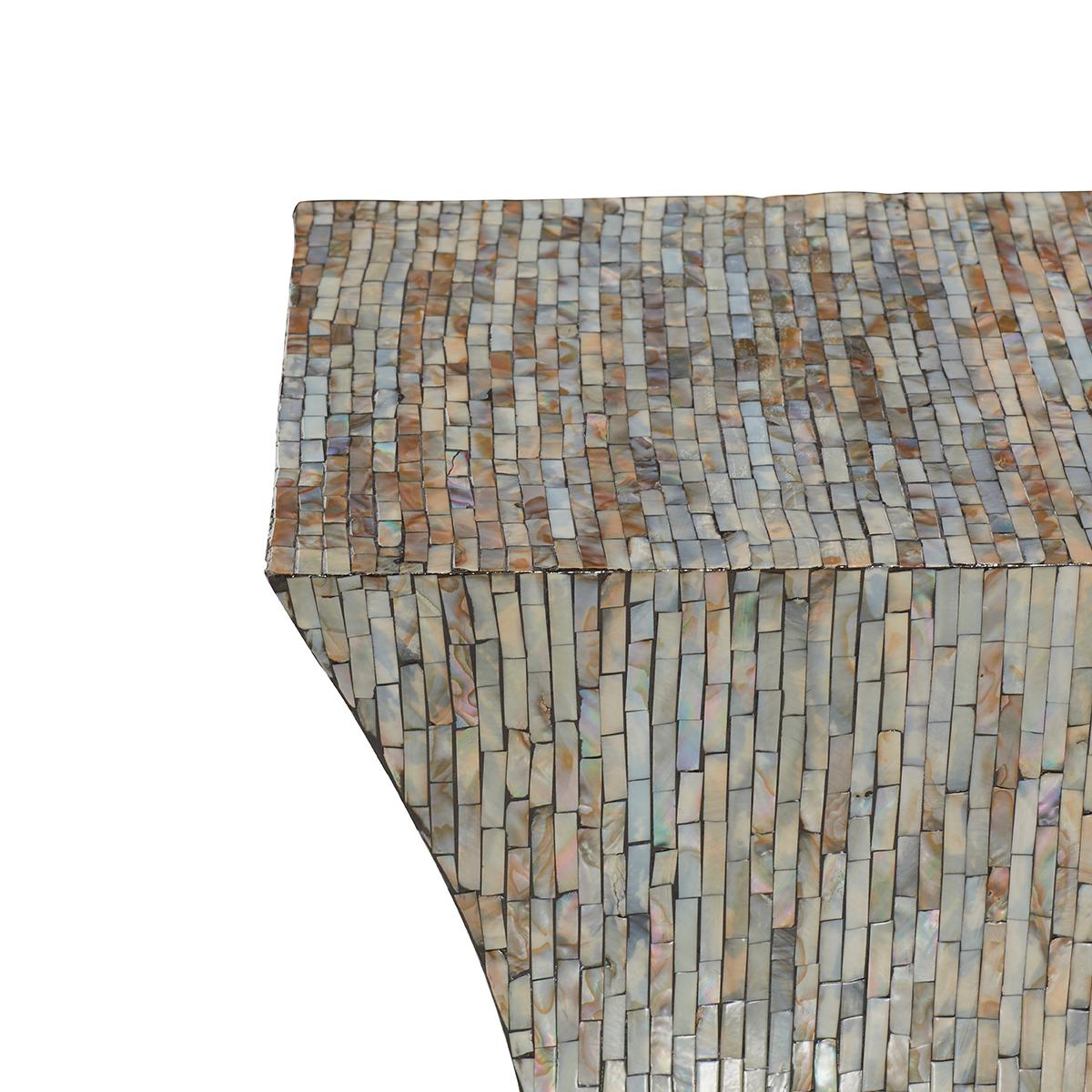Description This 9th & Pike® multi-colored geometric shell table is a refined and stunning statement piece for eclectic coastal interiors. It features a reverse-curve plain...
